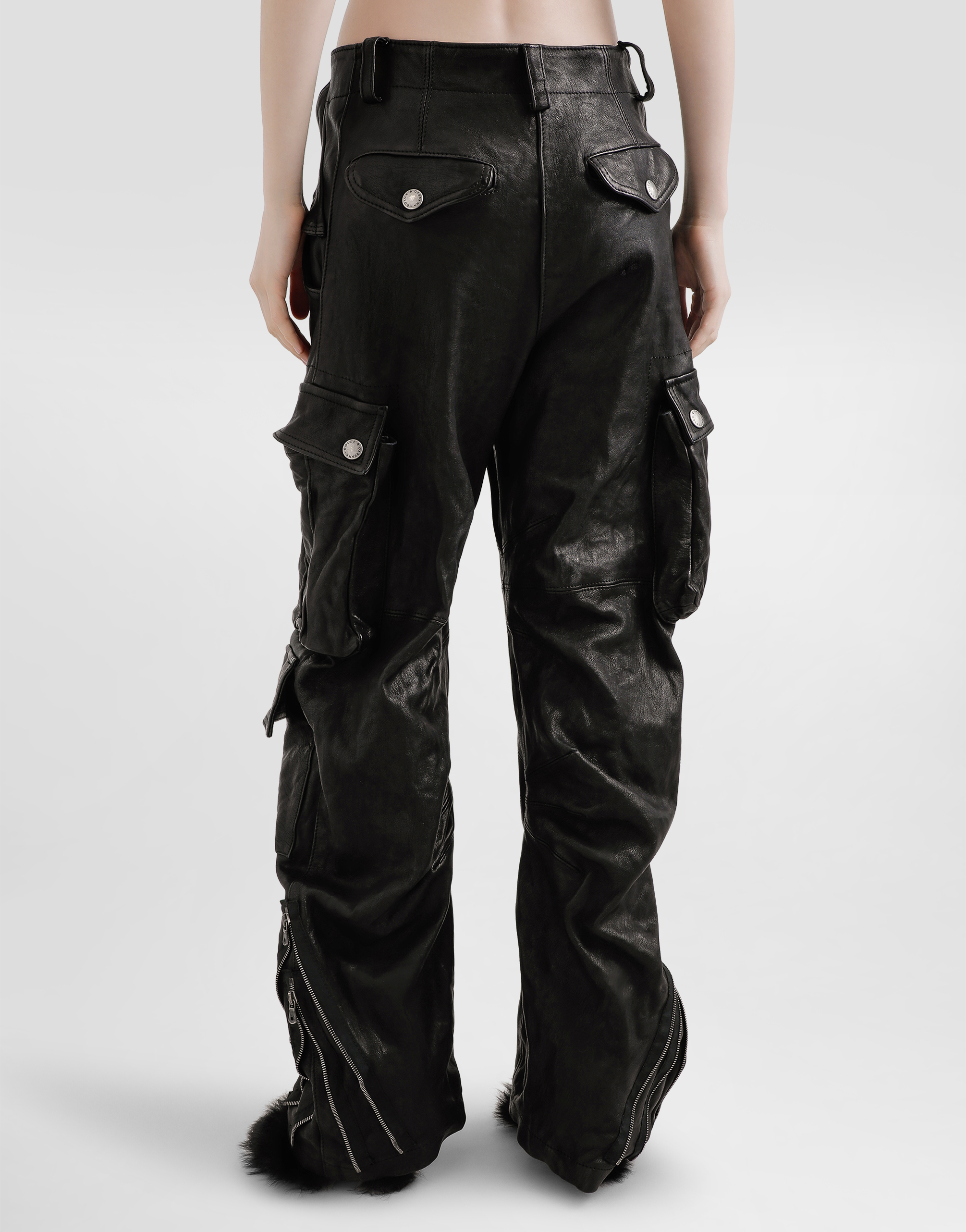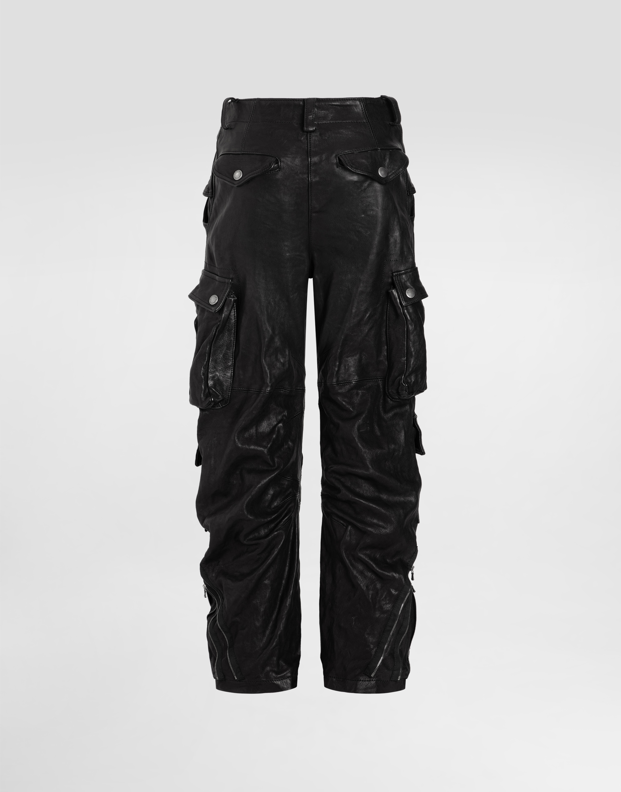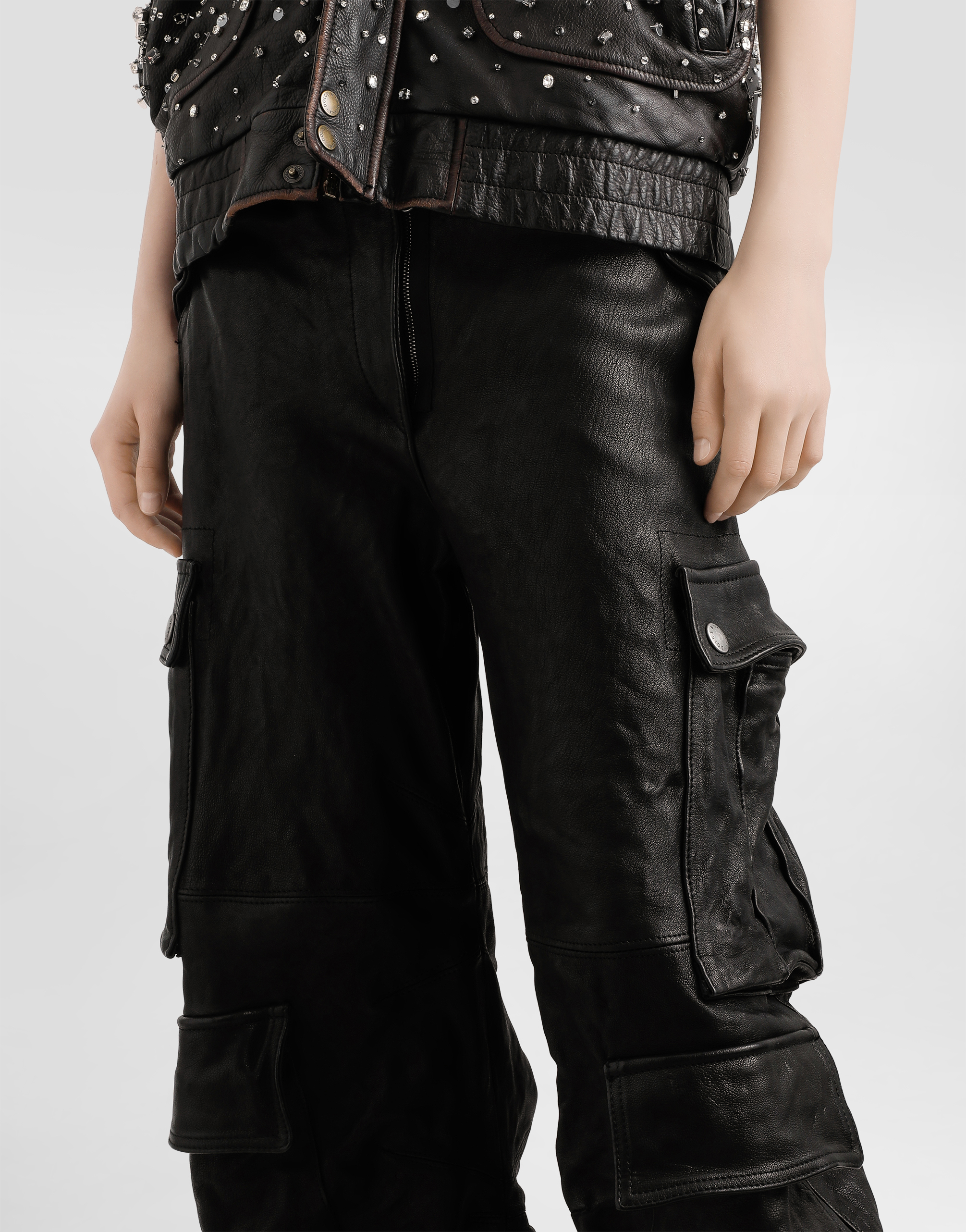 Эти кожаные карго брюки из ягненка - незаменимая вещь для тех, кто ищет универсальный и модный элемент гардероба. Изготовлены из высококачественных материалов, идеально подходят для современного и изысканного образа.