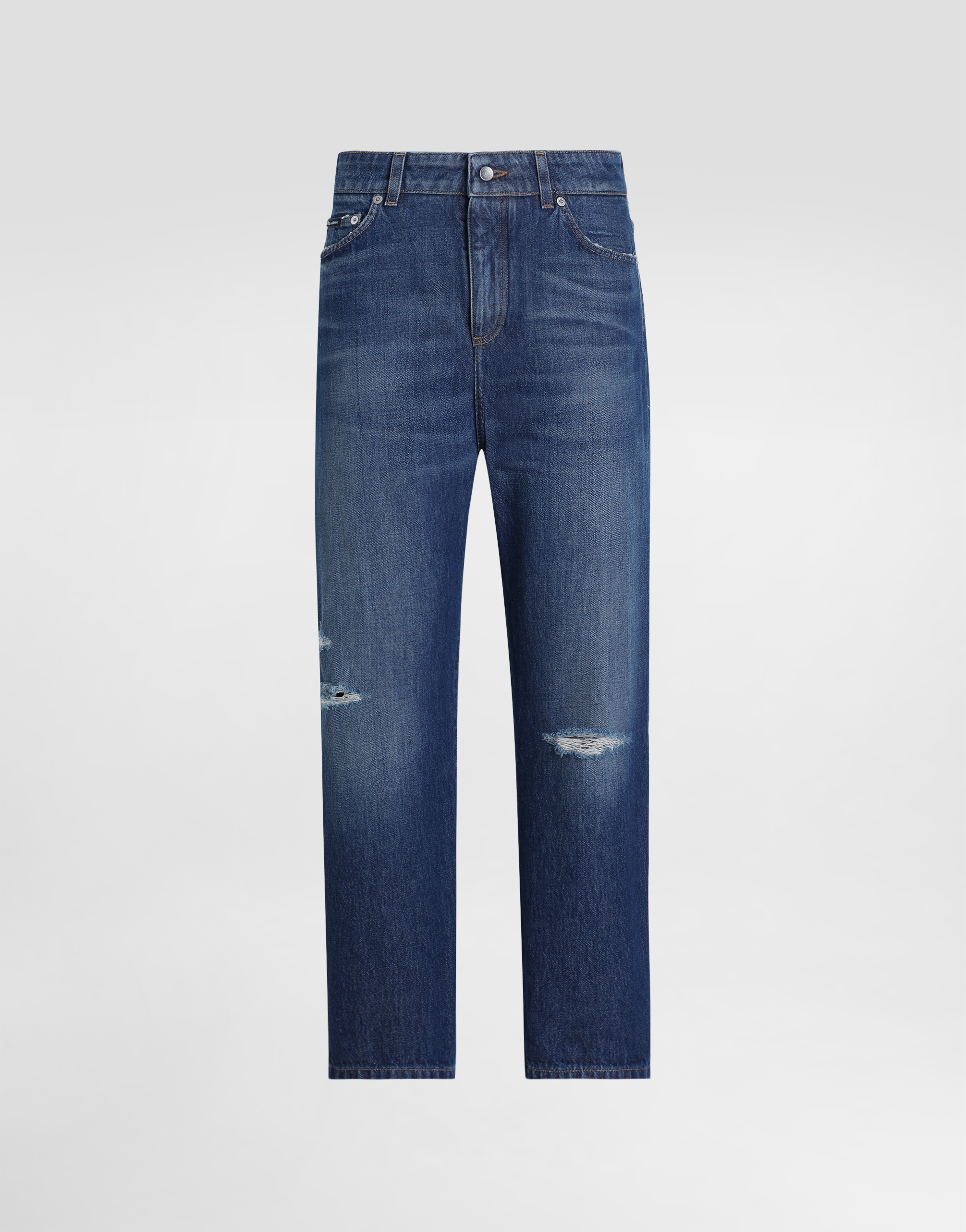 Джинсы-бойфренды из хлопкового денима с потертостями: