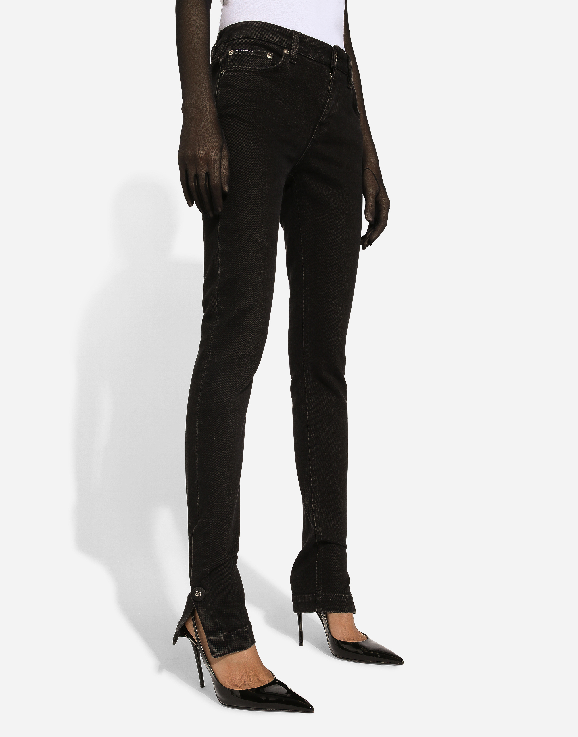 Джинсы Girly из хлопкового денима: • Черные • Средняя посадка • 5 карманов • Фирменная металлическая и кожаная нашивка • Фирменная этикетка на монетном кармане • Длина внутреннего шва: 89 см • Ширина низа: 15 см • Застежка на молнию и фирменную металлическую пуговицу • Модель ростом 175 см, размер IT 40 • Сделано в Италии