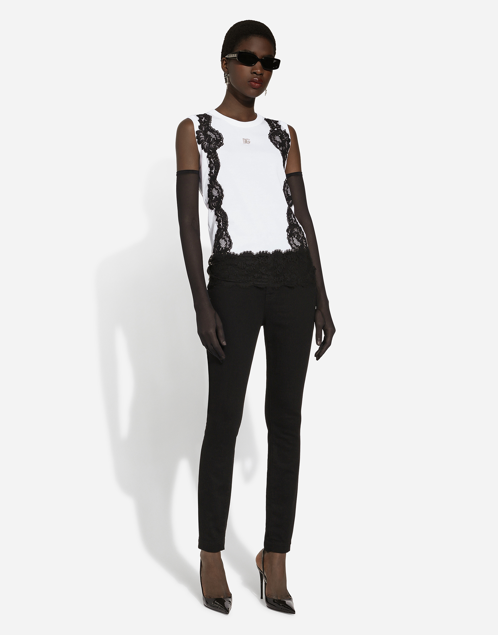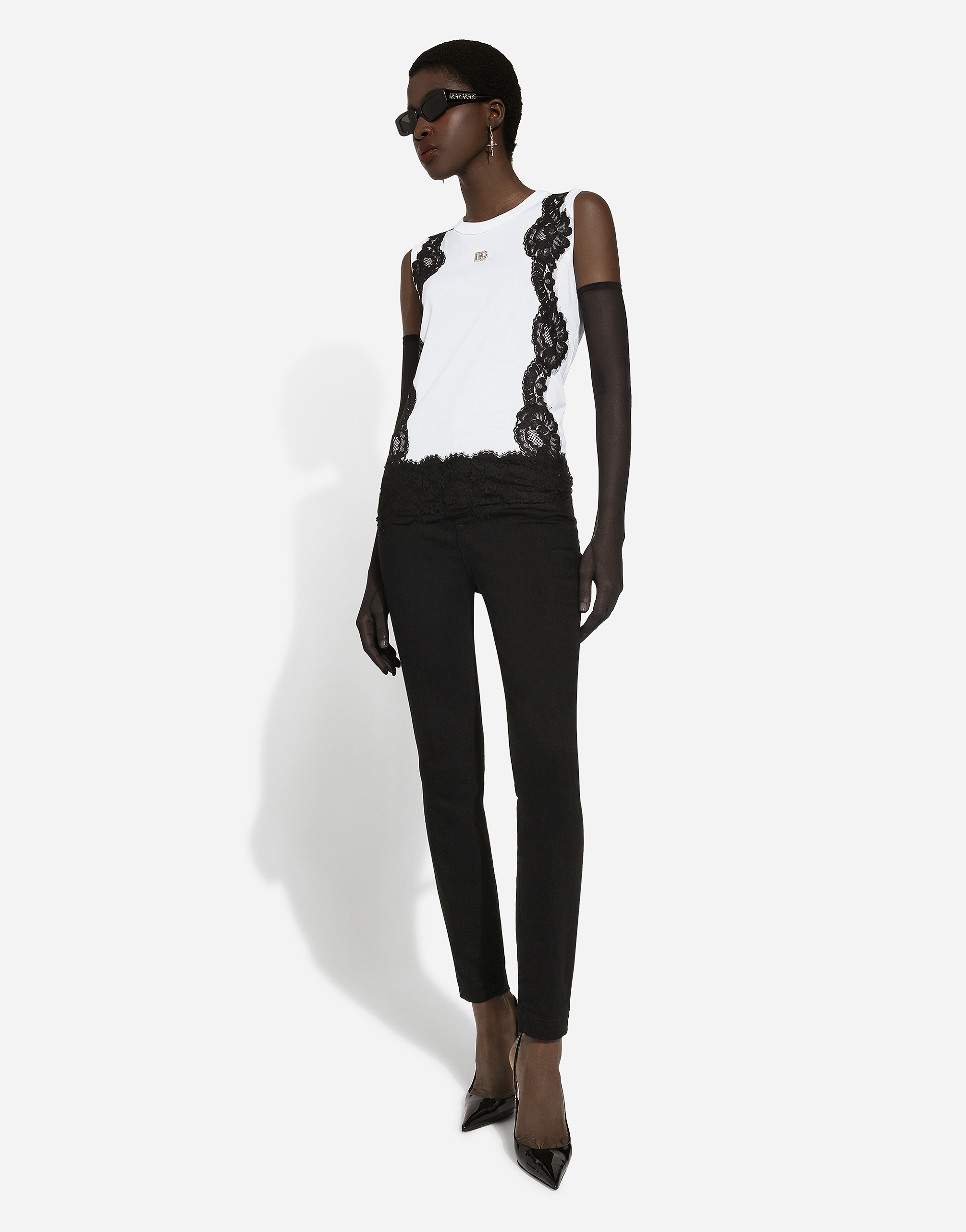 Джинсы скинни Audrey из стрейчевого хлопкового денима: • Черные • Высокая талия • 5 карманов • Прилегающий крой (скинни) • Фирменная металлическая и кожаная нашивка • Фирменная нашивка на монетном кармане • Длина внутреннего шва: 73 см • Ширина низа брючин: 13,5 см • Металлическая пуговица с логотипом и молния • Модель имеет рост 175 см и носит размер IT 40 • Сделано в Италии