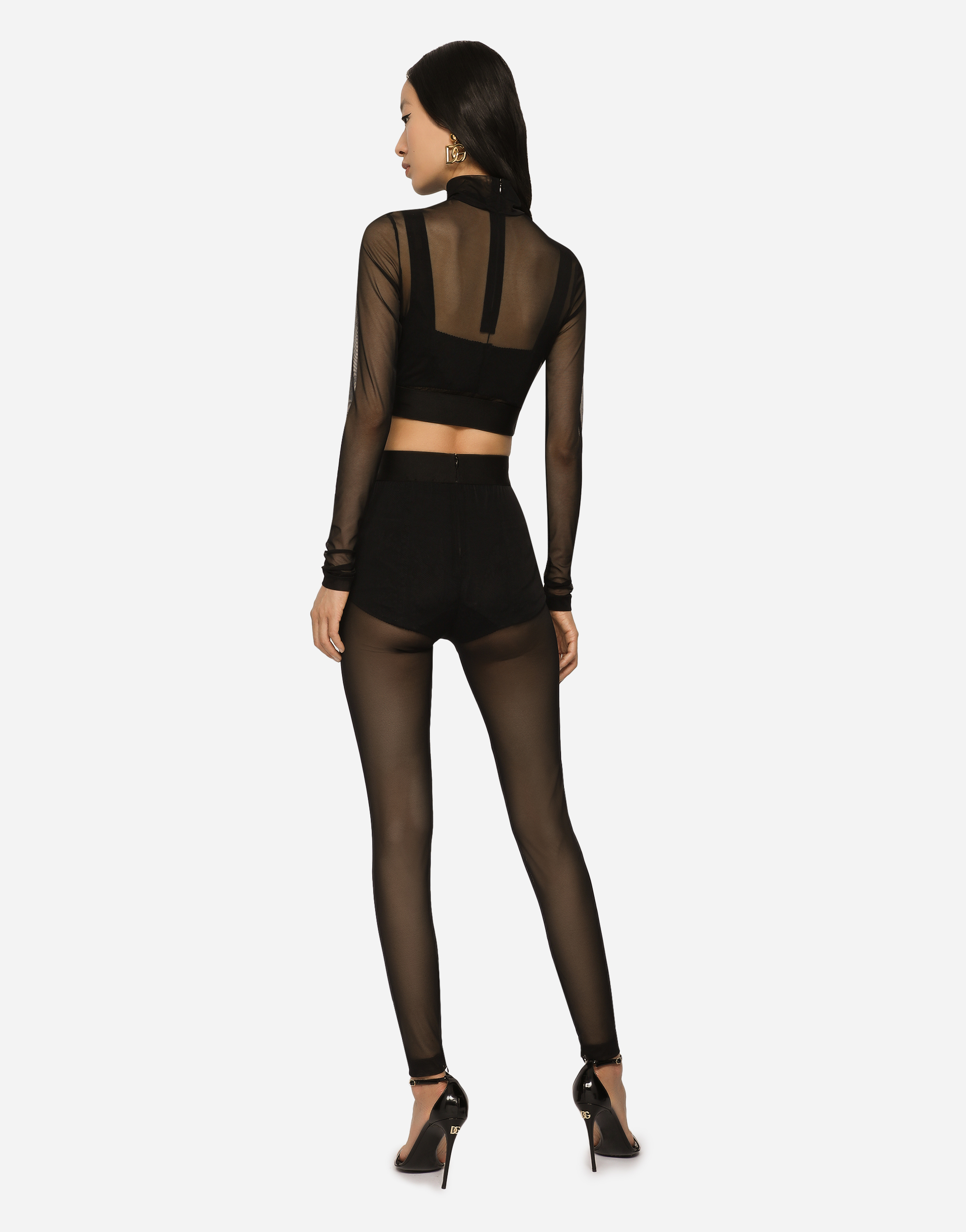 Легинсы из эластичного тюля: • Эластичный пояс с фирменным логотипом • Без подкладки • Модель имеет рост 175 см и носит размер IT 40 • Сделано в Италии