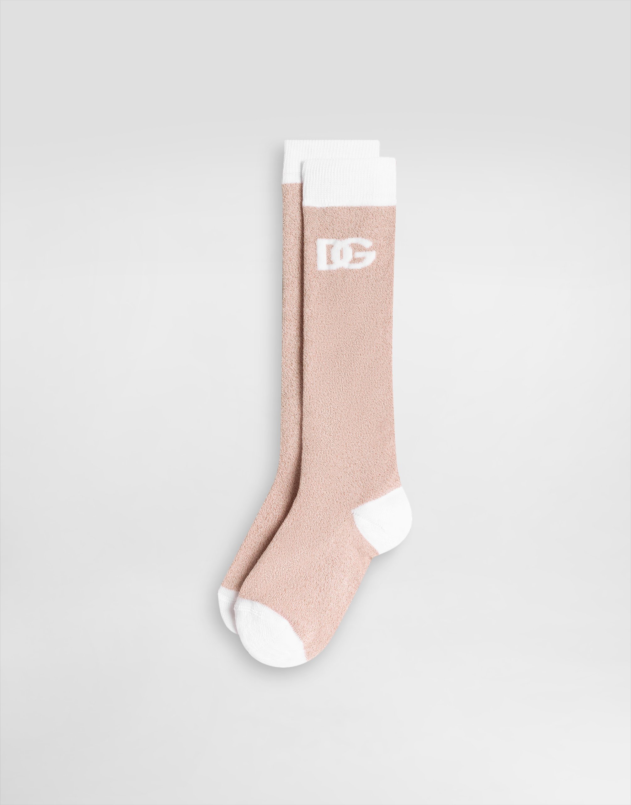 Хлопковые носки гладкой вязки с логотипом DG: • Розовый цвет • Стандартный крой • Вязка 14-го калибра • Изделие размера M имеет длину по ноге 32 см • В комплекте фирменный мешочек для хранения • Сделано в Италии