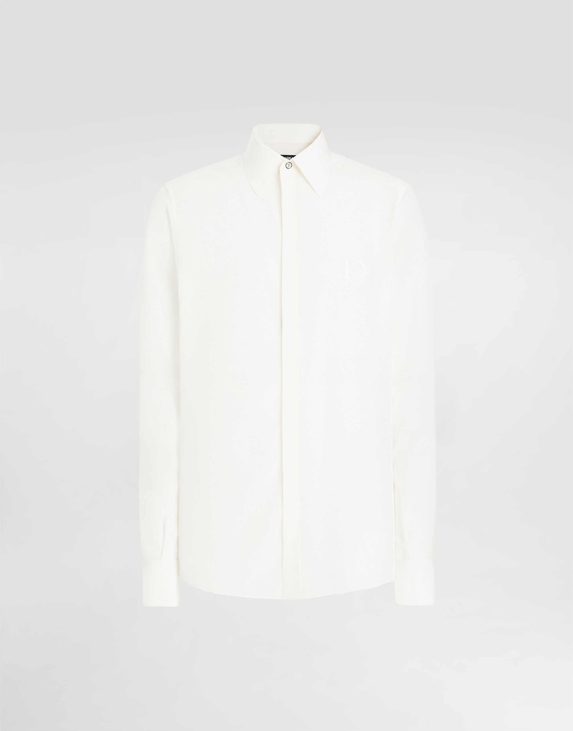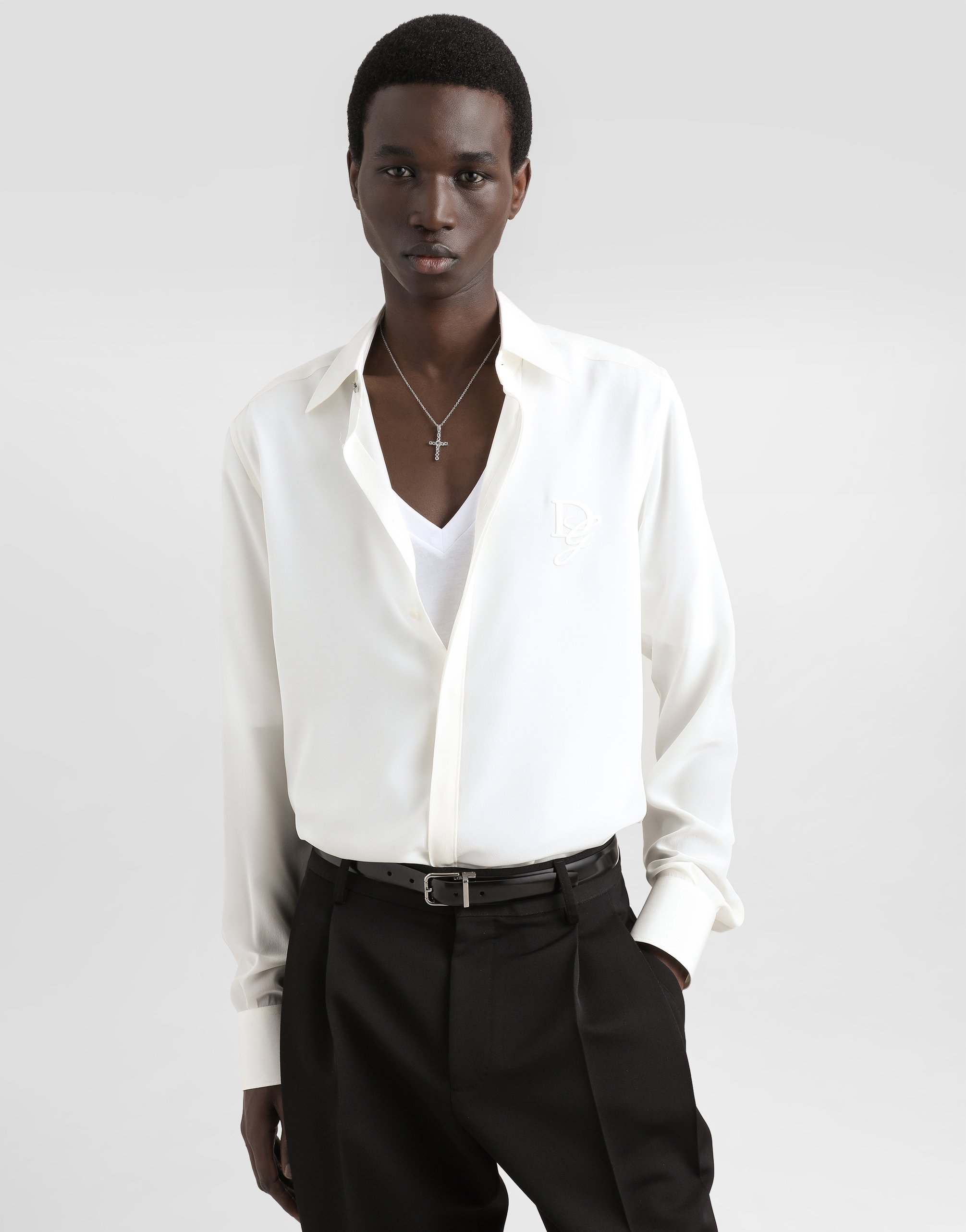 Шелковая рубашка с вышитым логотипом Dolce & Gabbana, белый