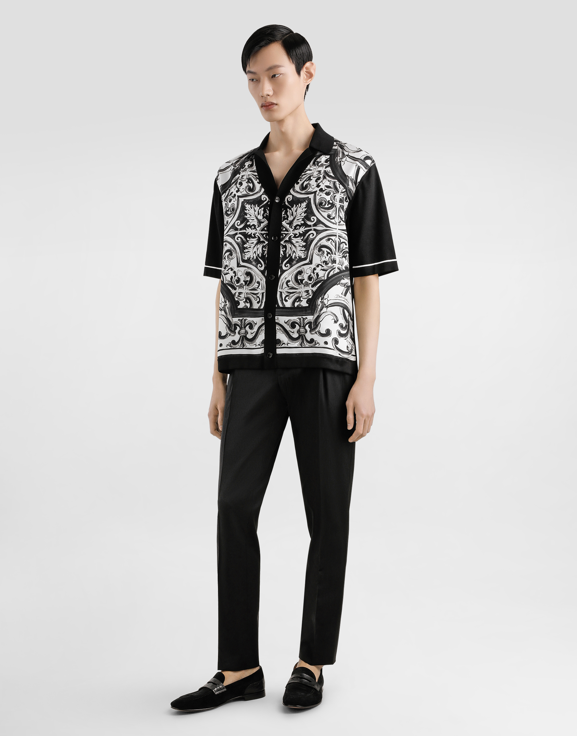 Эта рубашка оверсайз - пример повседневной элегантности, идеально подходящий для тех, кто ищет уникальную вещь благодаря майоликовой принте и портняжному мастерству.