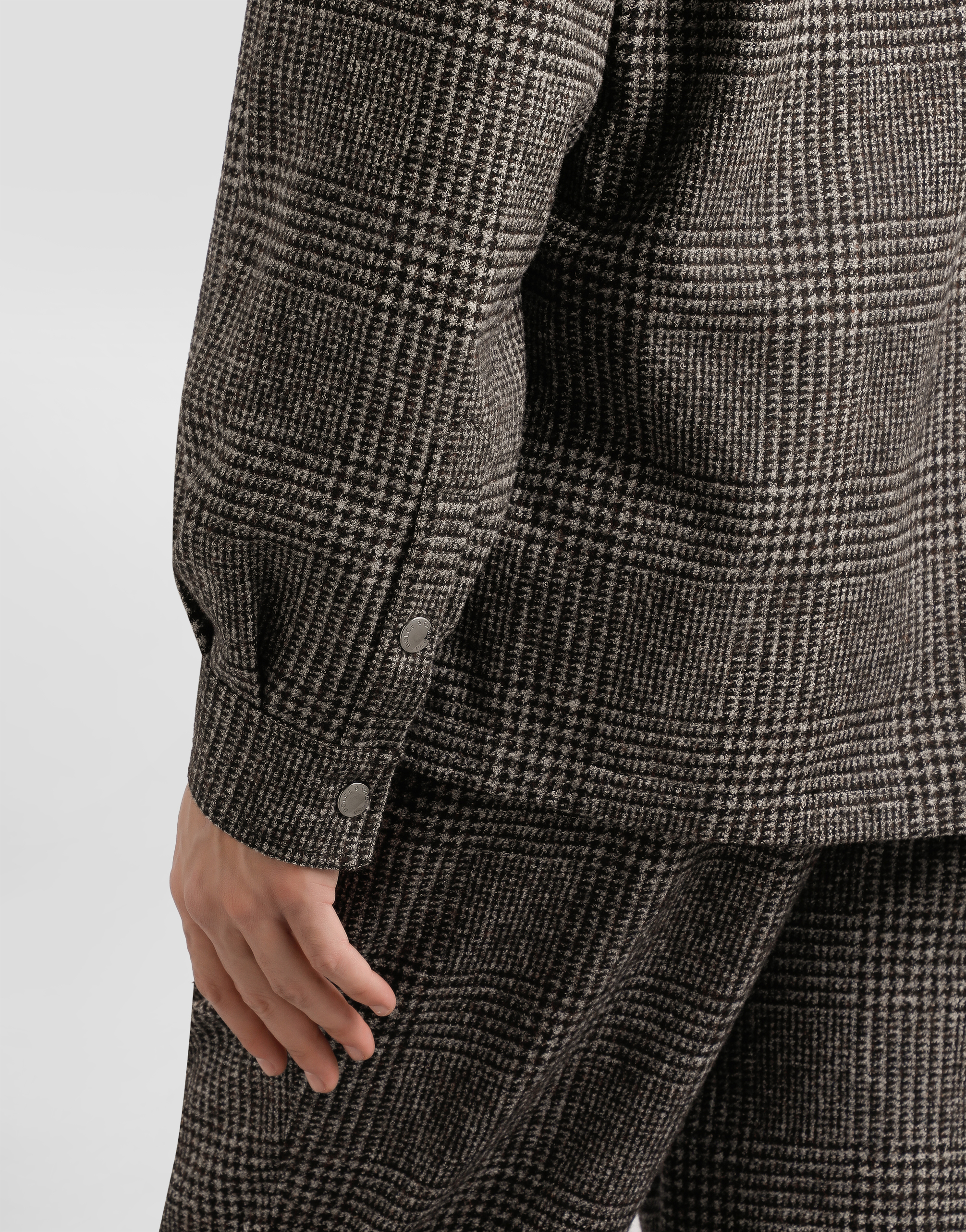 Рубашка в клетку Глен из смеси альпаки: • Многоцветная • Свободный крой • Заниженная линия плеча • Длинные рукава • Манжеты с фаской и застежкой на пуговицу • Накладные карманы с клапанами • Модель ростом 185 см, размер 48 IT • Сделано в Италии