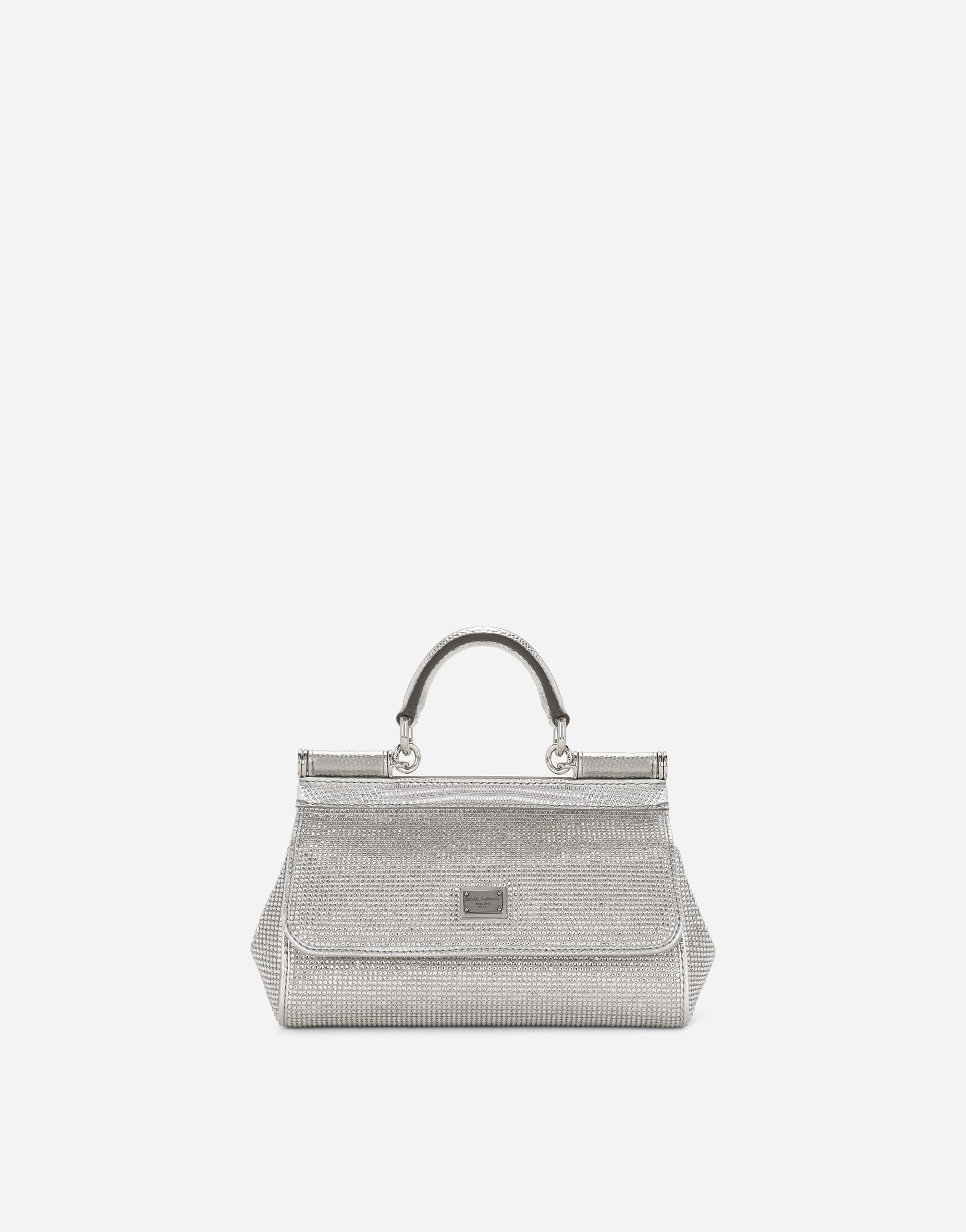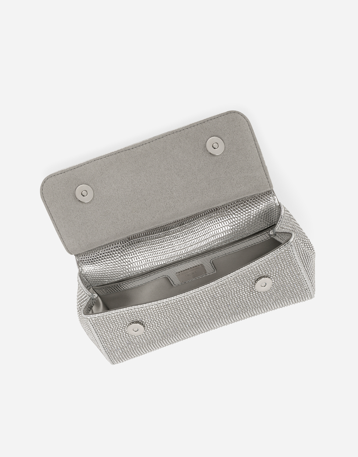 Сумка Small Sicily из атласа с полностью расшитым стразами и металлическим логотипом с покрытием из палладия: