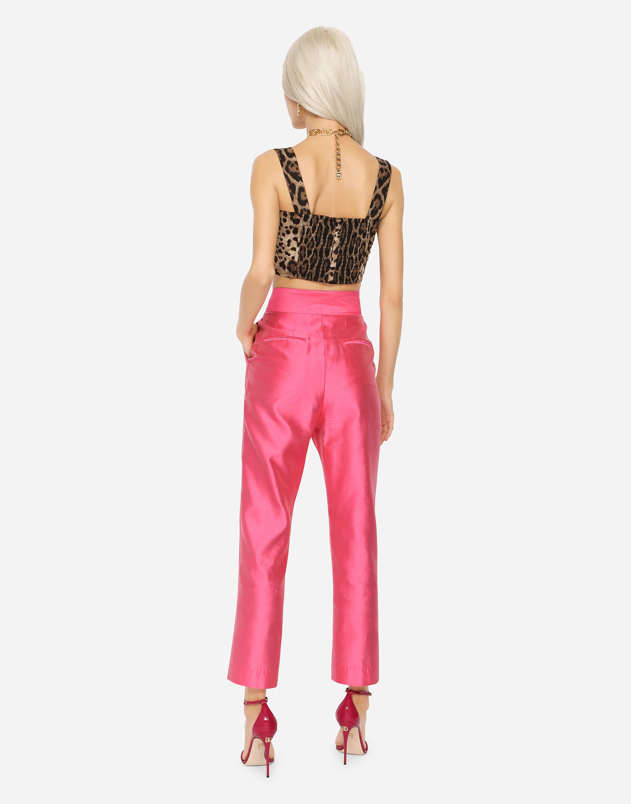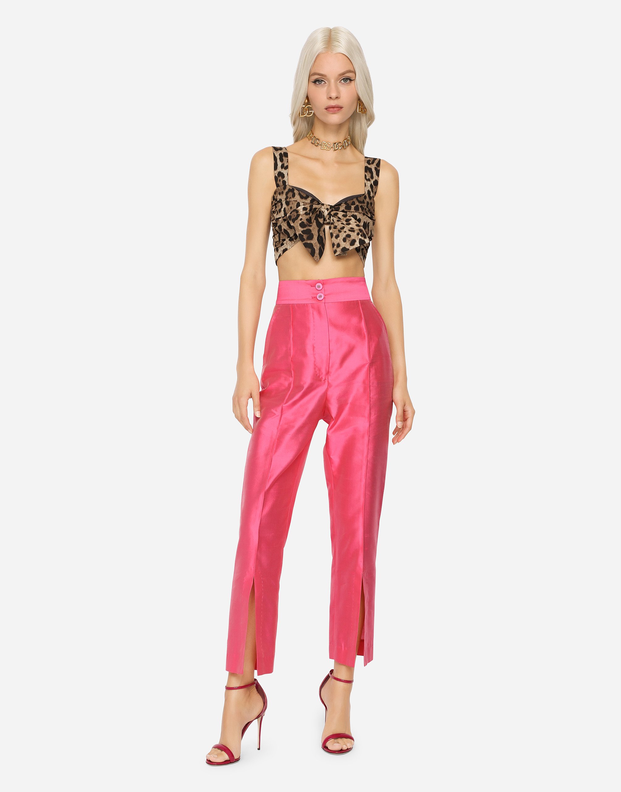 Яркий и с дикой притягательностью, топ Dolce & Gabbana привлечет всеобщее внимание своим культовым леопардовым принтом. Легкость хлопкового поплина придает этому изделию изысканность и создает летнее настроение.