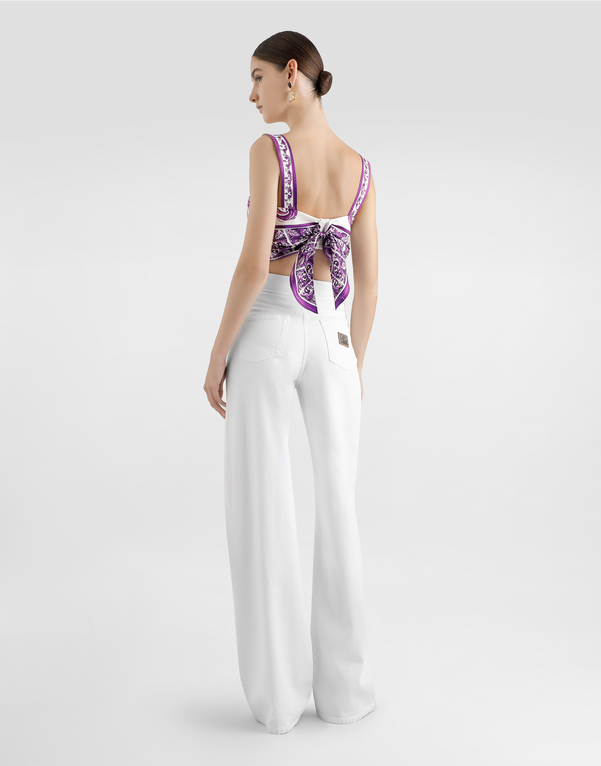 Шелковый топ с принтом майолика Dolce & Gabbana, мультиколор