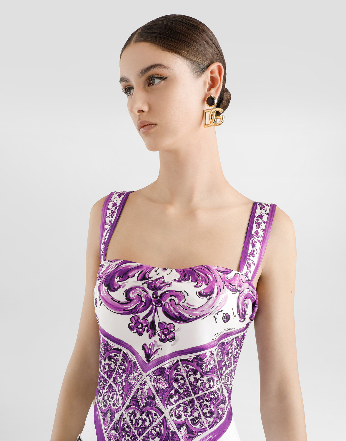 Шелковый топ с принтом Majolica: