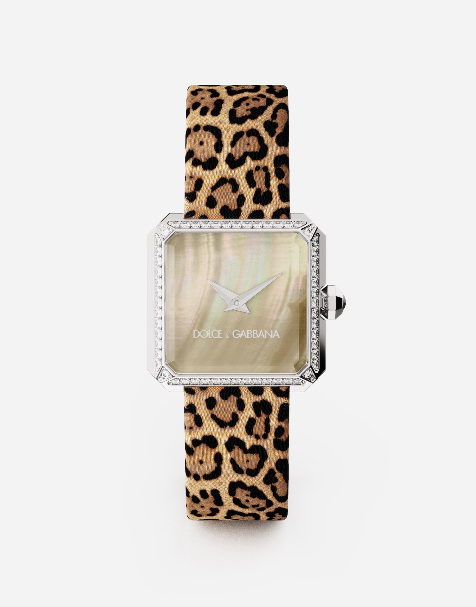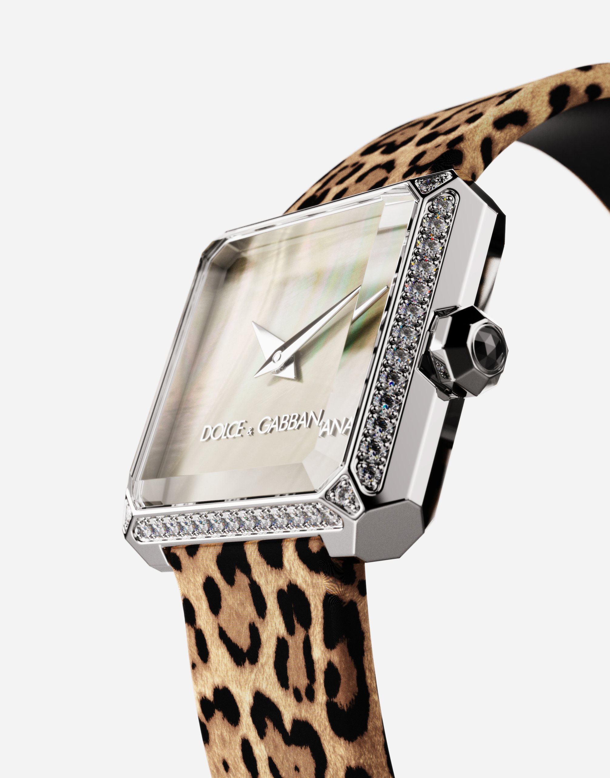 Стальные часы с бриллиантами Dolce & Gabbana, леопардовый принт
