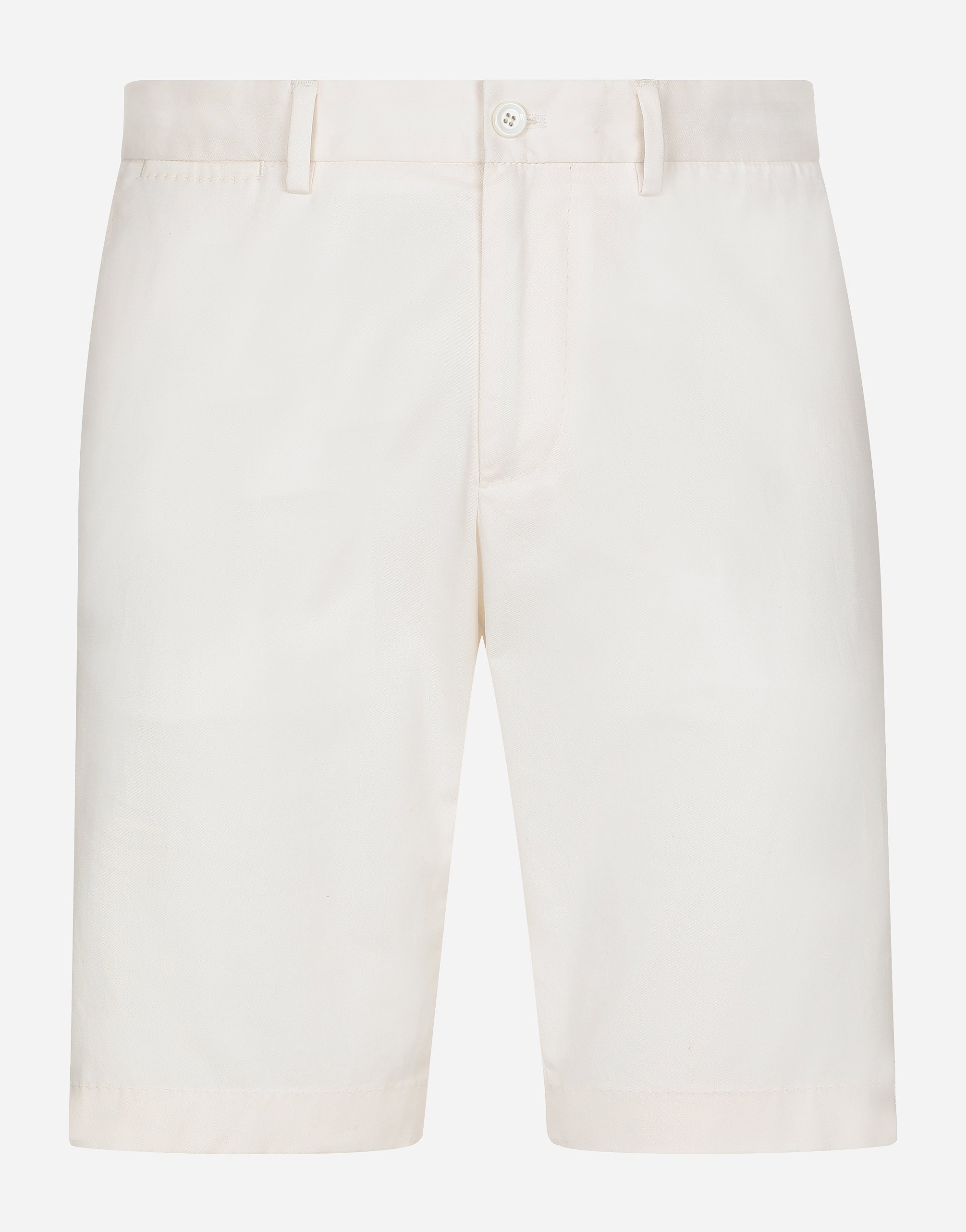 Бермуды из эластичного хлопка: • Бежевые • Прямой крой (regular fit) • Шлевки для ремня на поясе • Застежка на молнию с планкой и пуговицу • Передние карманы с косым входом и задние прорезные карманы на пуговицах • Длина по внешнему шву 48,5 см, ширина низа 23 см для размера IT 48 • Сделано в Италии