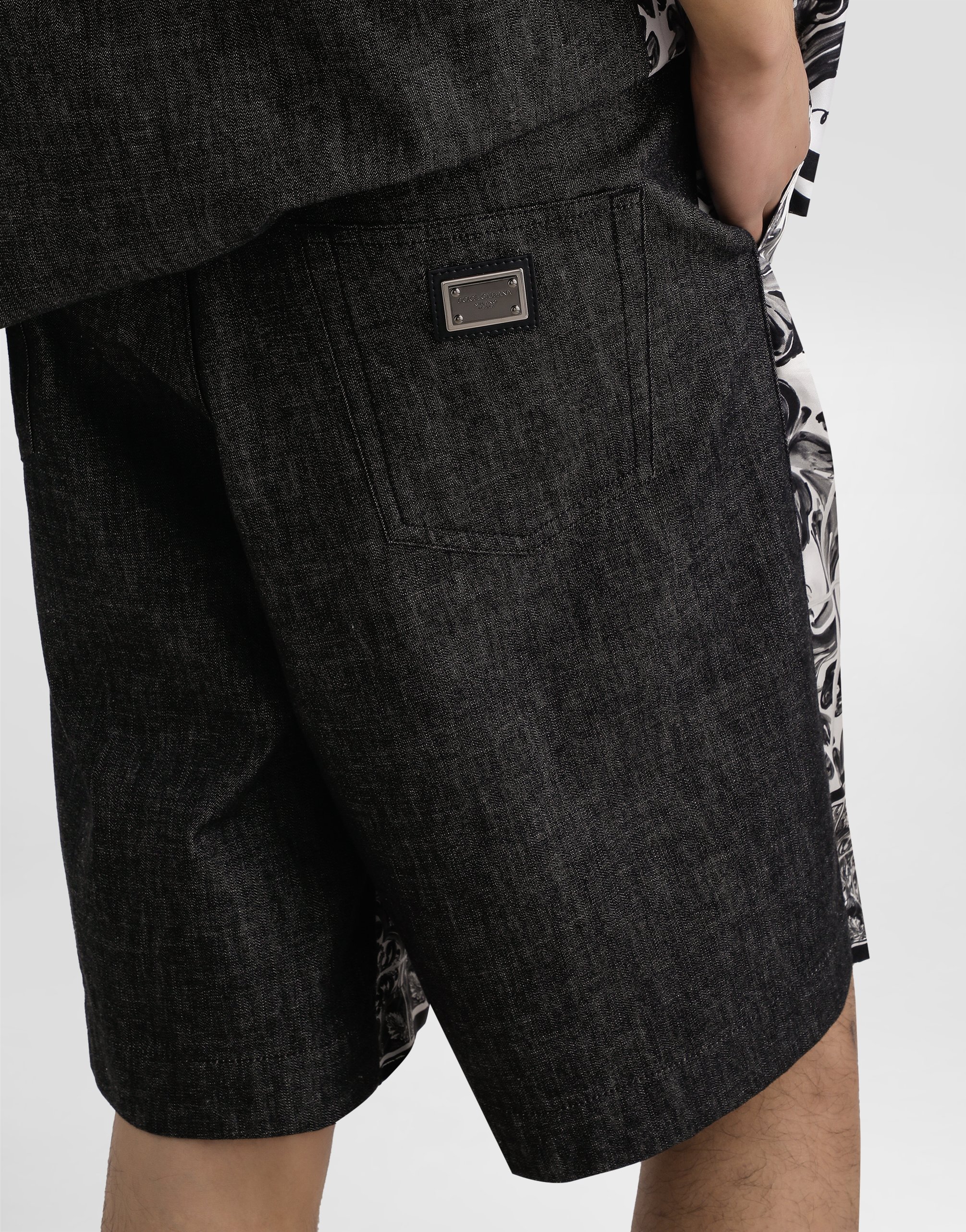 Эти джинсовые шорты-бермуды идеально подходят для повседневного и стильного образа благодаря мастерству исполнения и уникальным деталям, которые делают их эксклюзивной вещью.