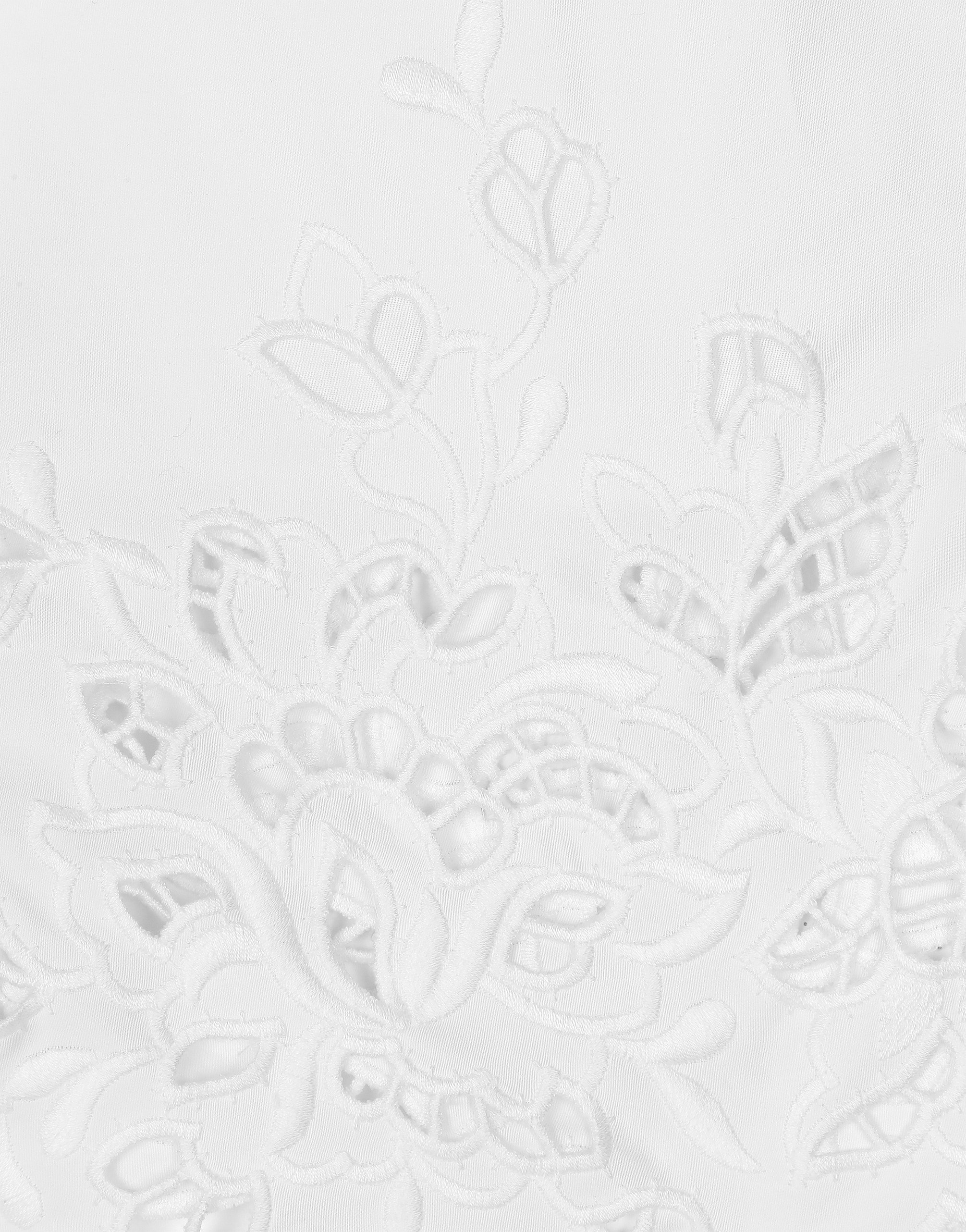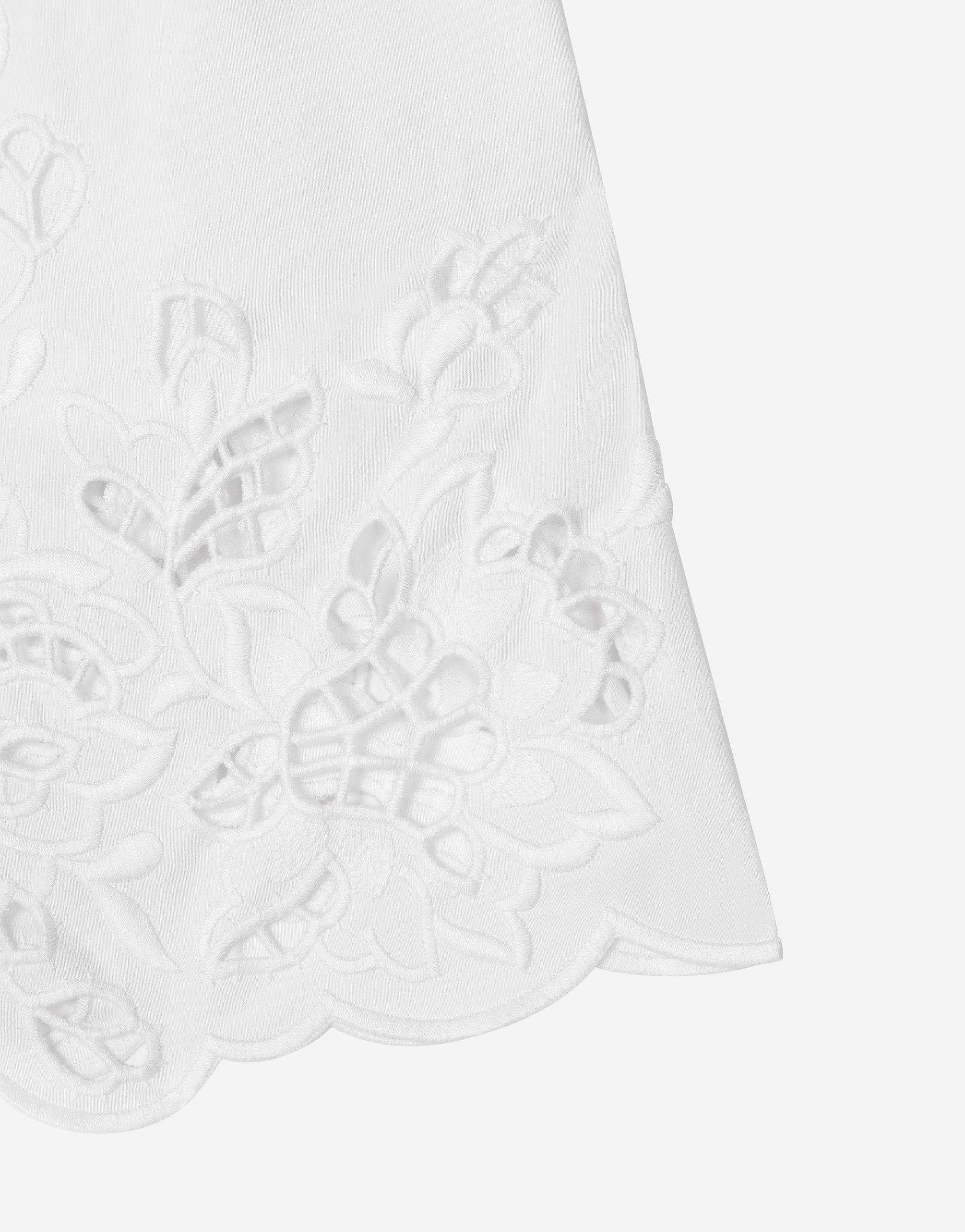 Шорты из хлопкового поплина с вырезами: • Белый цвет • Высокая посадка • Косые боковые карманы • Длина по внутреннему шву: 6,7 см • Ширина низа: 34,2 см • Застежка на молнию и пуговицу • Рост модели - 175 см, размер - IT 40 • Сделано в Италии