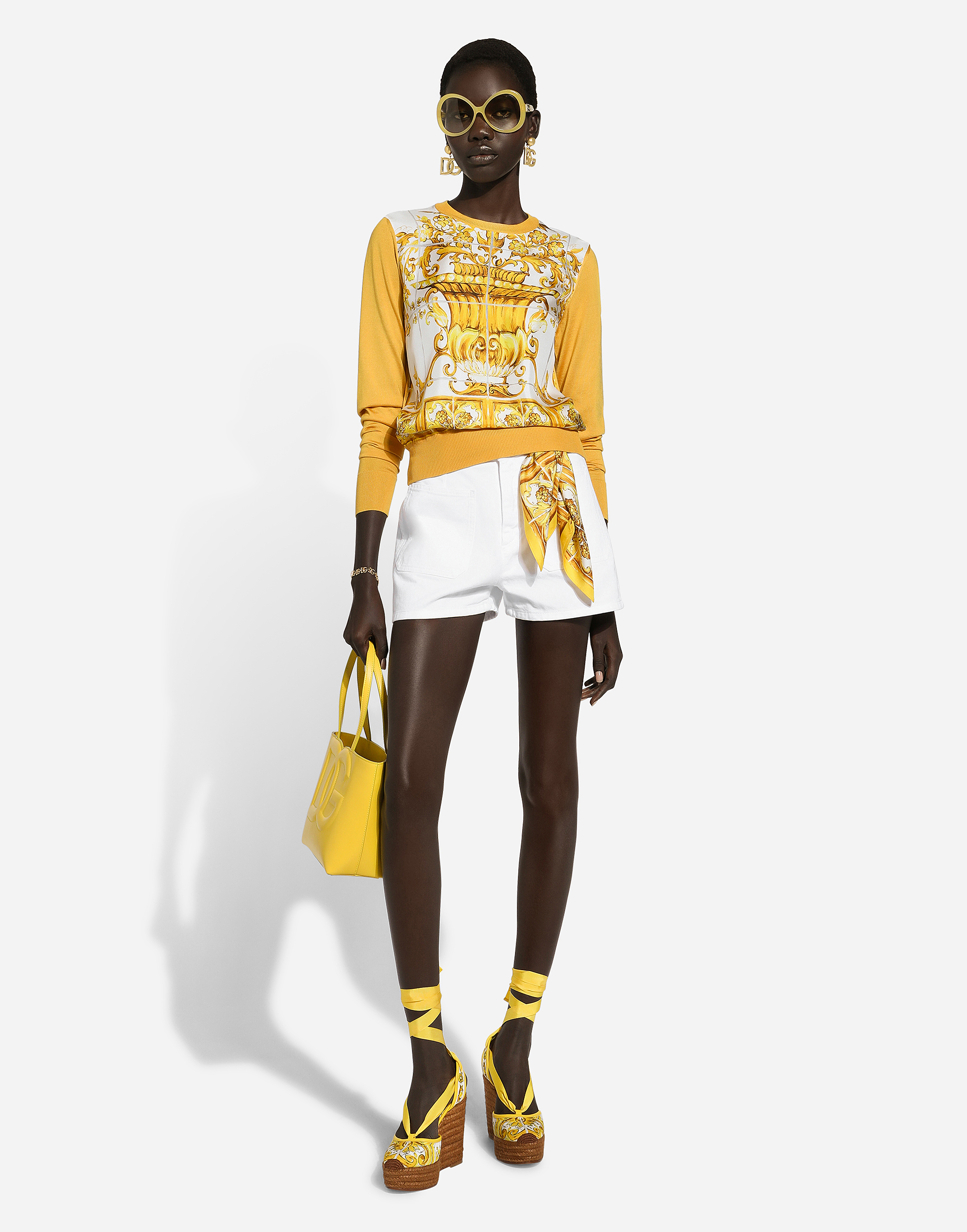 Майолика, символ итальянского мастерства, представлена в лимонно-желтом цвете для коллекции осень-зима 24/25. Этот яркий оттенок, подчеркнутый чистым белым, напоминает о летнем свете, играющем на типичных сицилийских домах с видом на море. Выразительные цветовые акценты придают культовым предметам и аксессуарам бренда смелость, необыкновенную женственность и яркость. Это дань уважения искусству майолики, которое вновь подчеркивает фирменную эстетику Dolce & Gabbana.