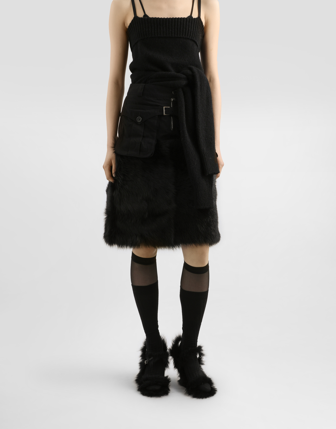 Эта миди-юбка с мехом - характерная вещь, сочетающая элегантность и оригинальность. Идеальный выбор для тех, кто хочет выглядеть изысканно и модно; подходит как для особых случаев, так и для добавления роскоши в повседневный гардероб.