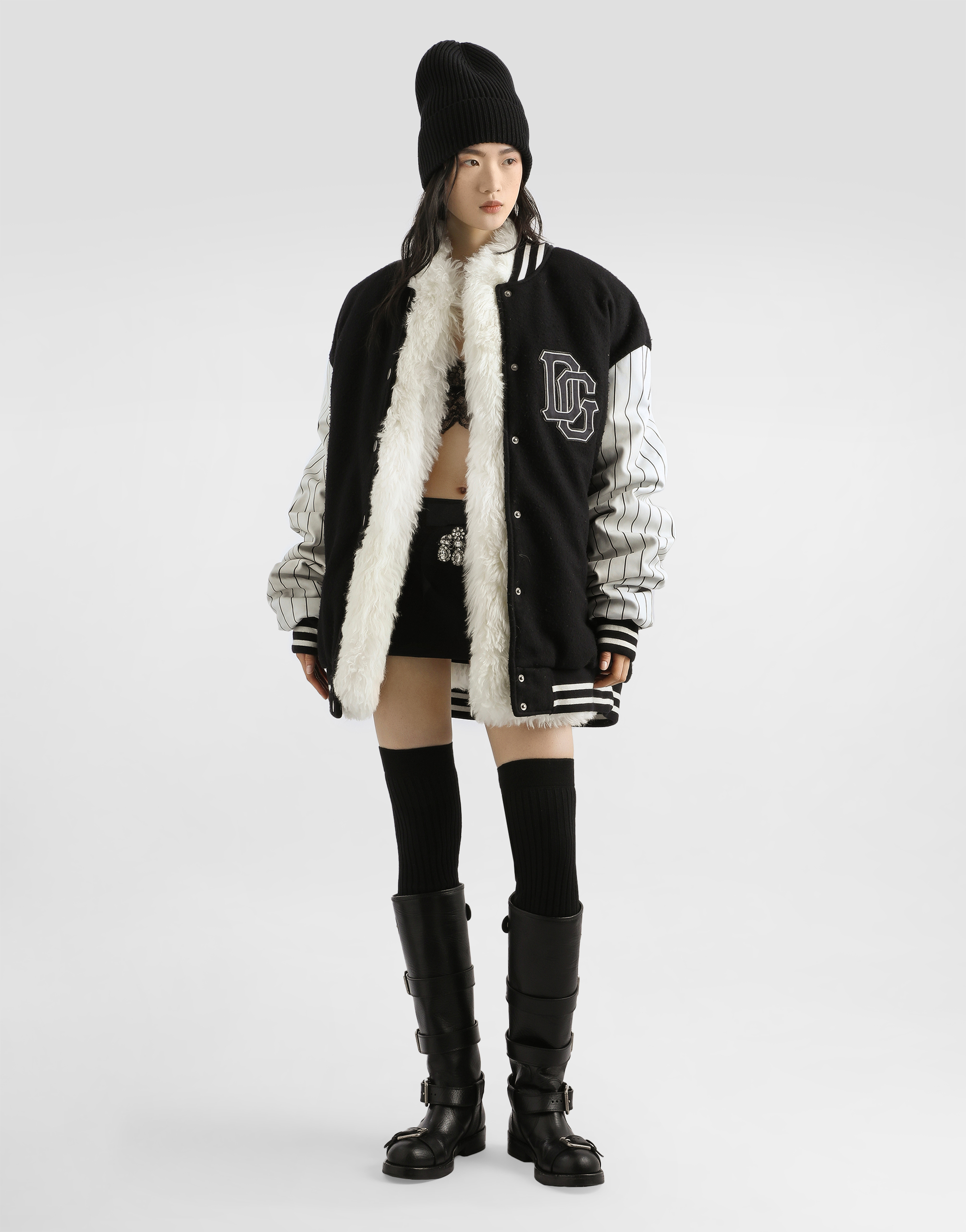 В коллекции для показа мод осень/зима 2025 дубленки в версиях без меха открывают комбинации платьев и создают игру контрастов, а джинсы дополняются вставками из ткани или с леопардовым принтом. Свитшоты - результат долгих экспериментов с объемами. Вечерние образы становятся драгоценными благодаря платьям со специальной вышивкой и сияющими акцентами из пайеток и кристаллов. Вставки из овчины объединяют также шляпы, обувь и сумки, включая модели с карманами.