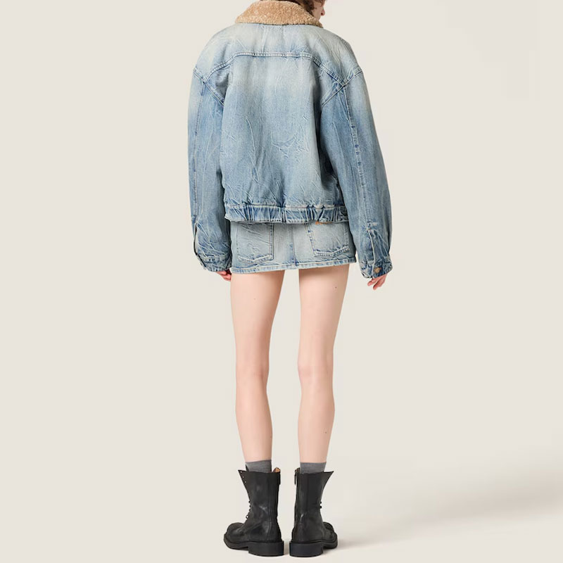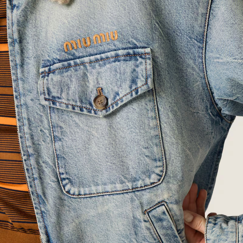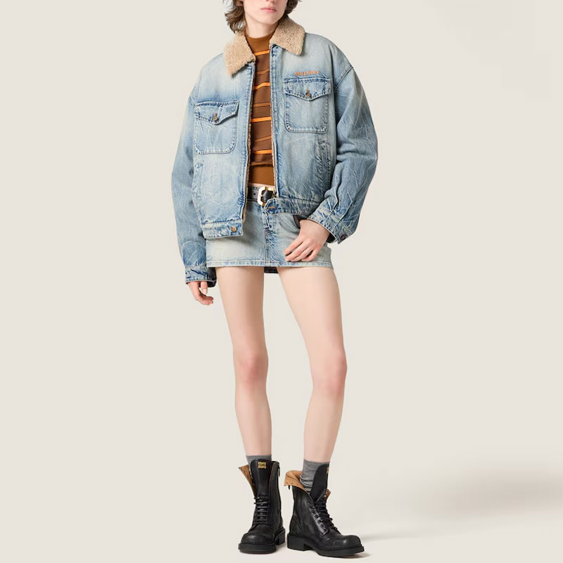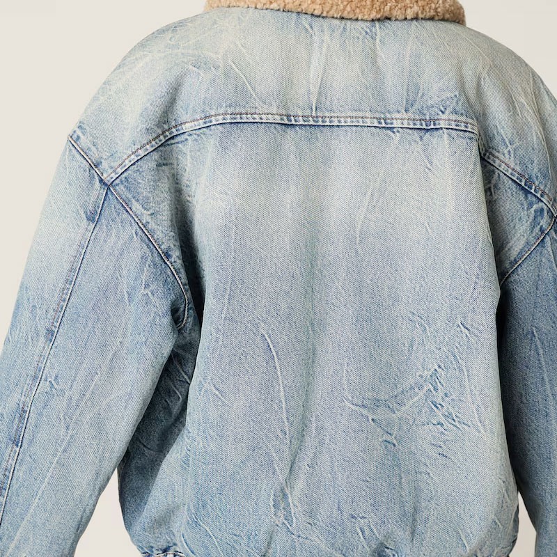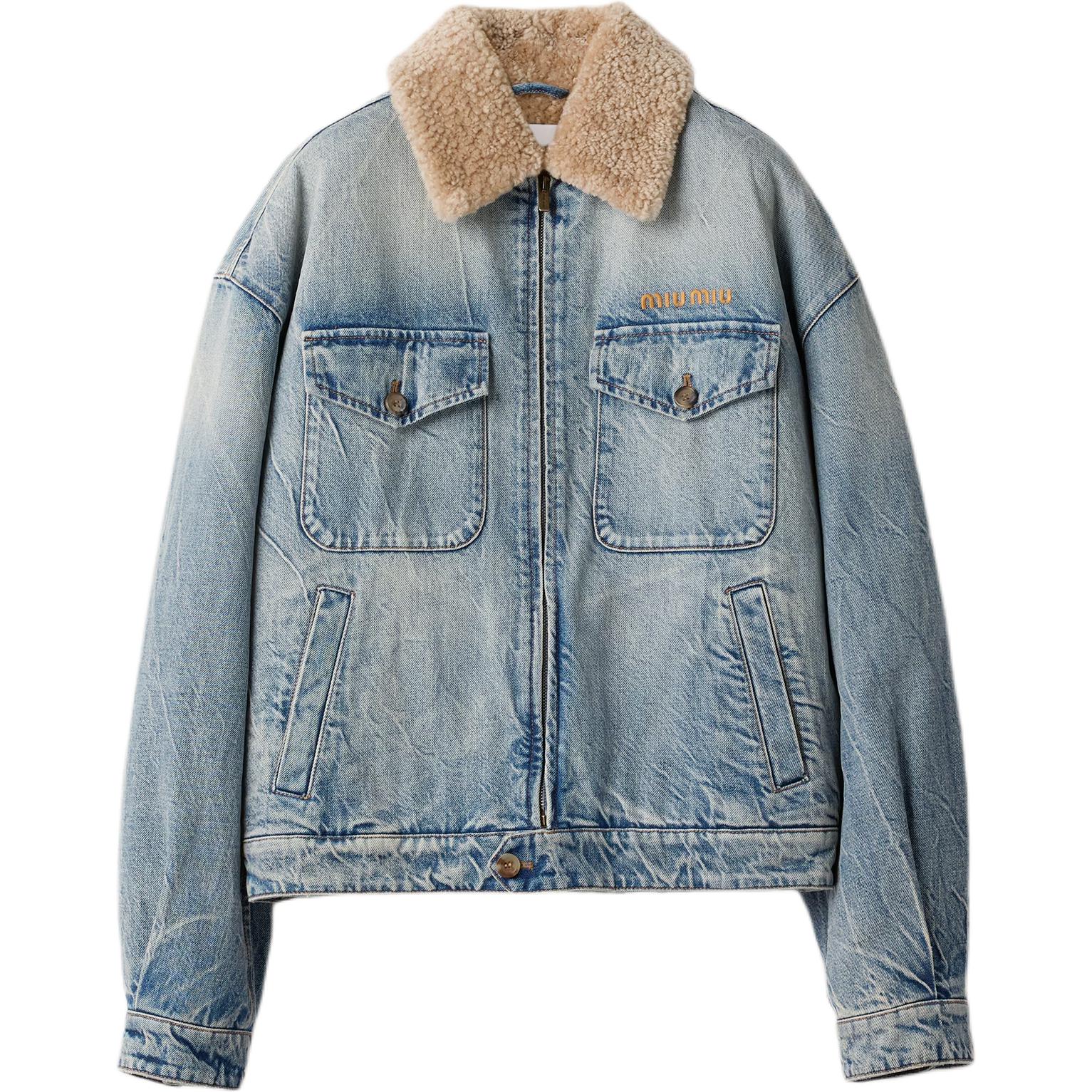 Джинсовая куртка с воротником из овчины Miu Miu, синий 375 224₽
