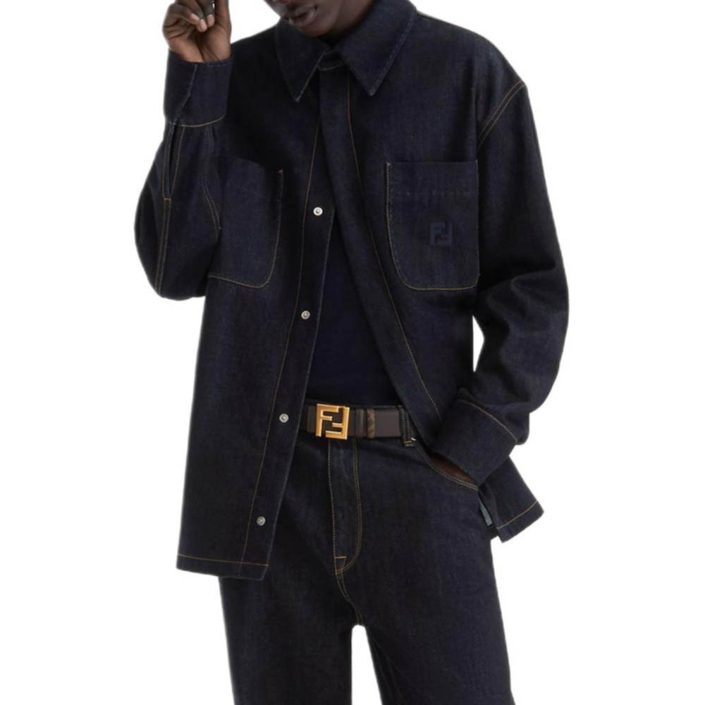 Джинсовая куртка с вышитым логотипом Fendi, синий 195 236₽
