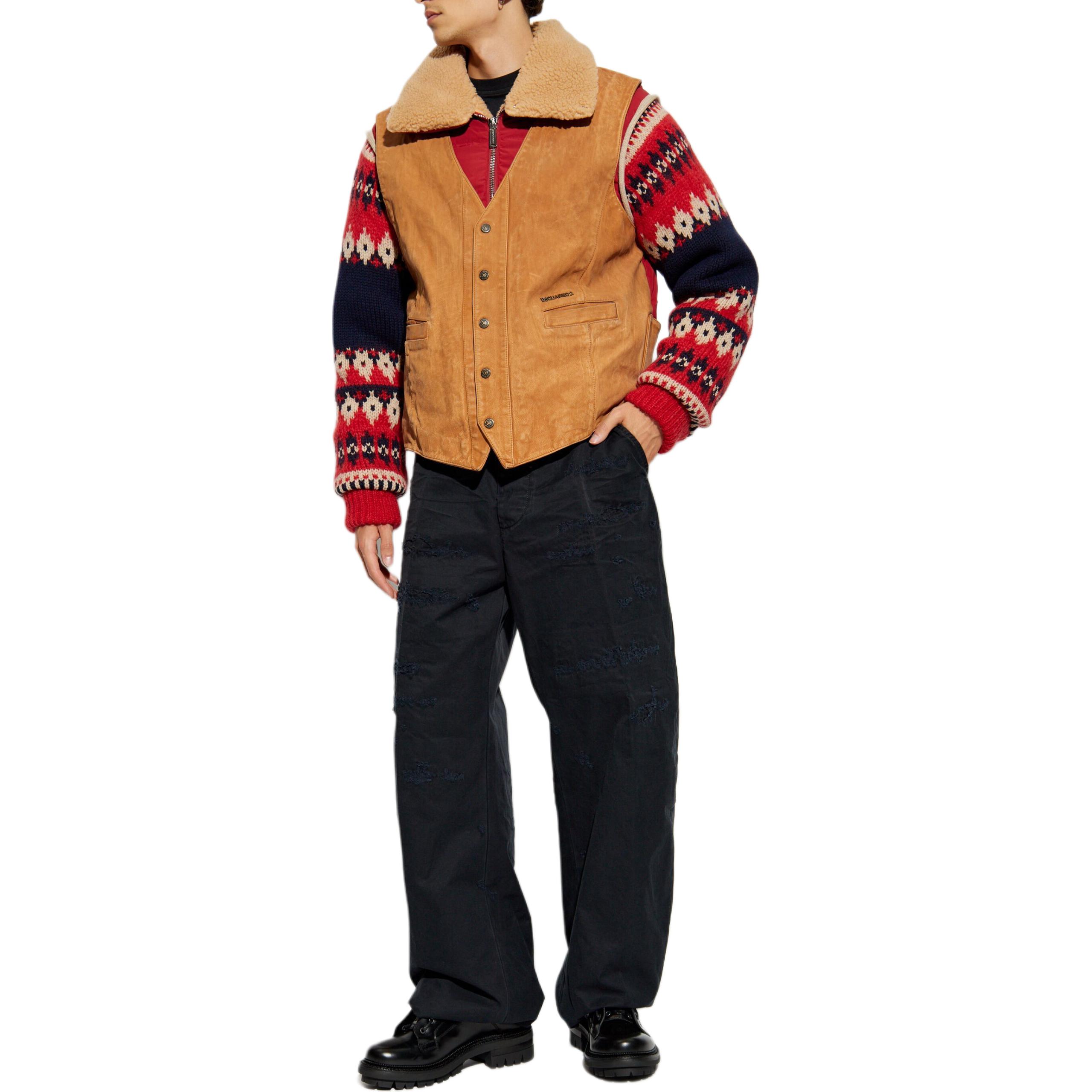 Dsquared 2 Куртка DSQUARED2 из замши с вязаными рукавами