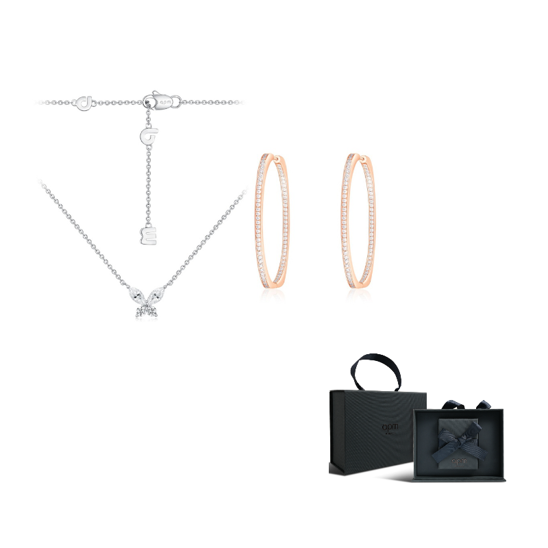 Style: Necklace+Rose Gold Shiny Zircon Hoop Earrings (Box Included)