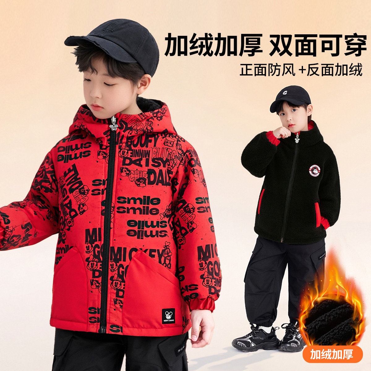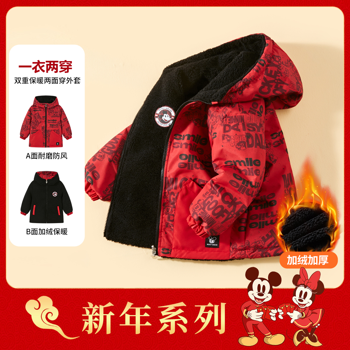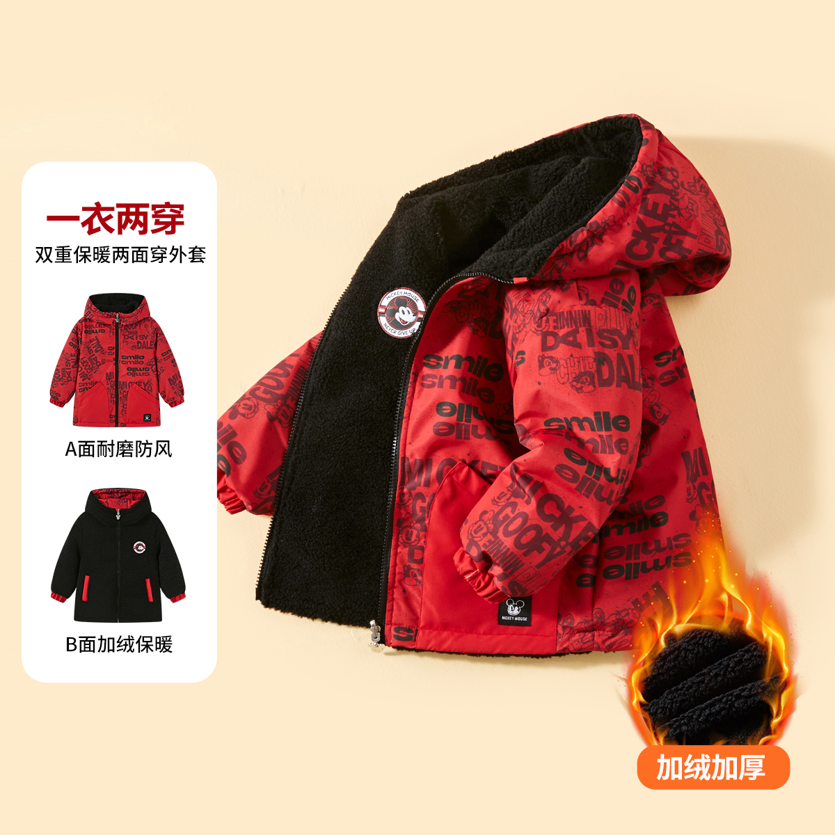 Детская утепленная курткас капюшоном, средней плотности Disney, красный