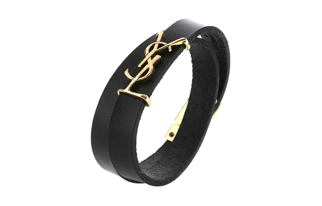 Кожаный браслет с логотипом Saint Laurent, черный 31 218₽