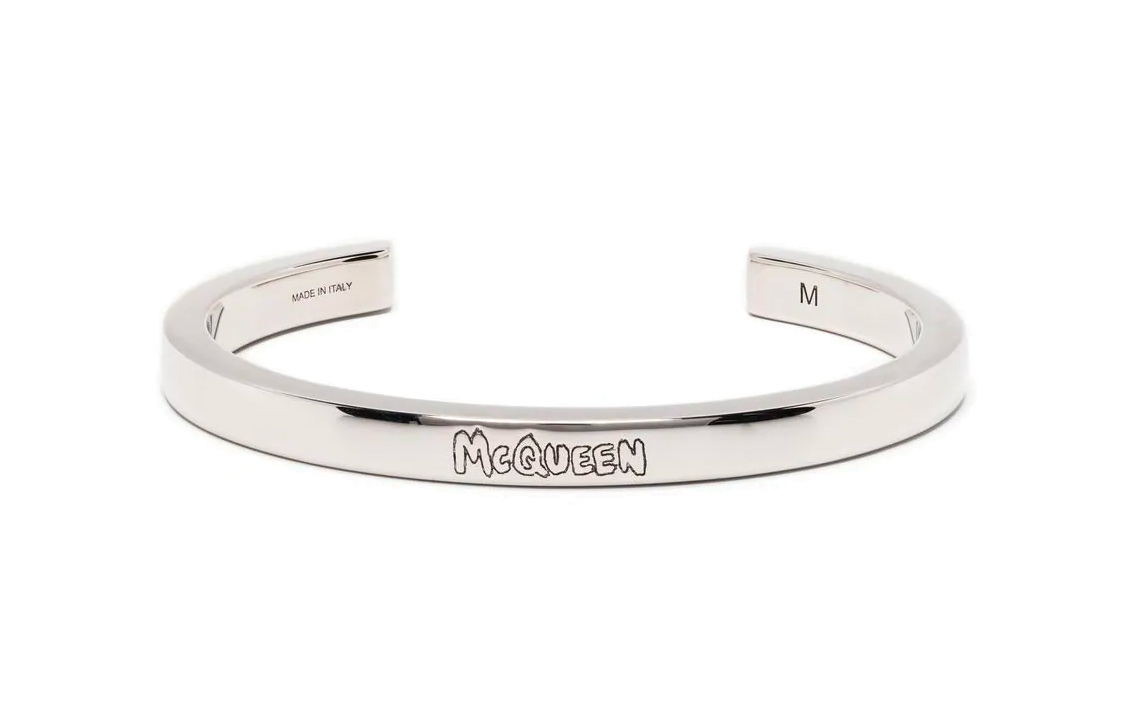 Браслет-манжета с выгравированным логотипом Alexander Mcqueen, серебро