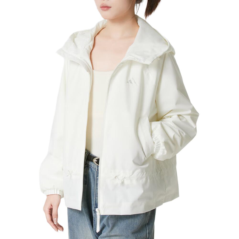 Adidas Куртки женские белые с капюшоном, средней плотности ткани, другие