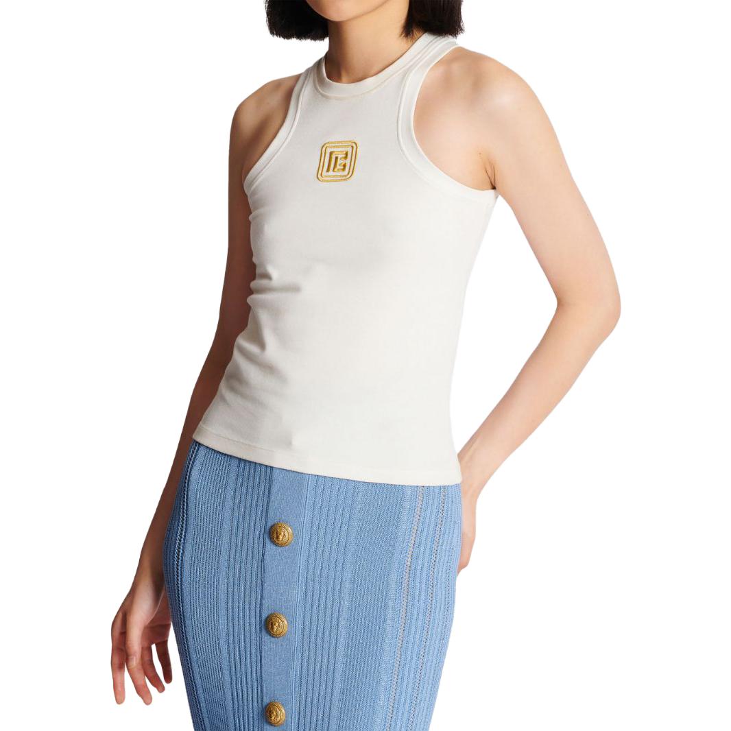 Майка с вышивкой Pb Balmain, белый