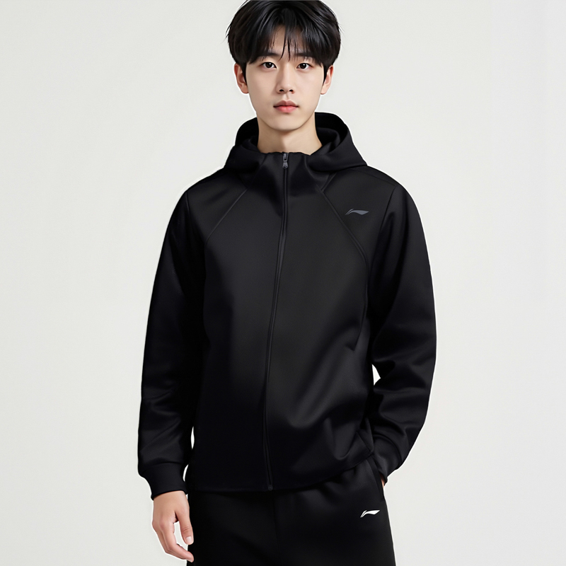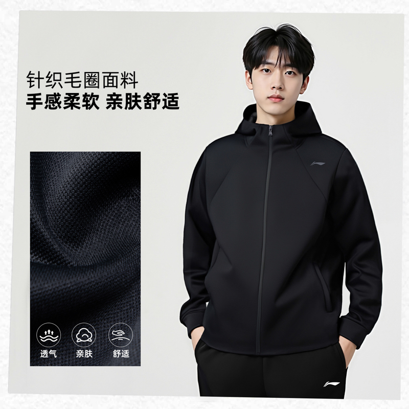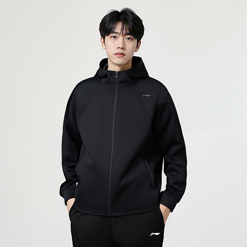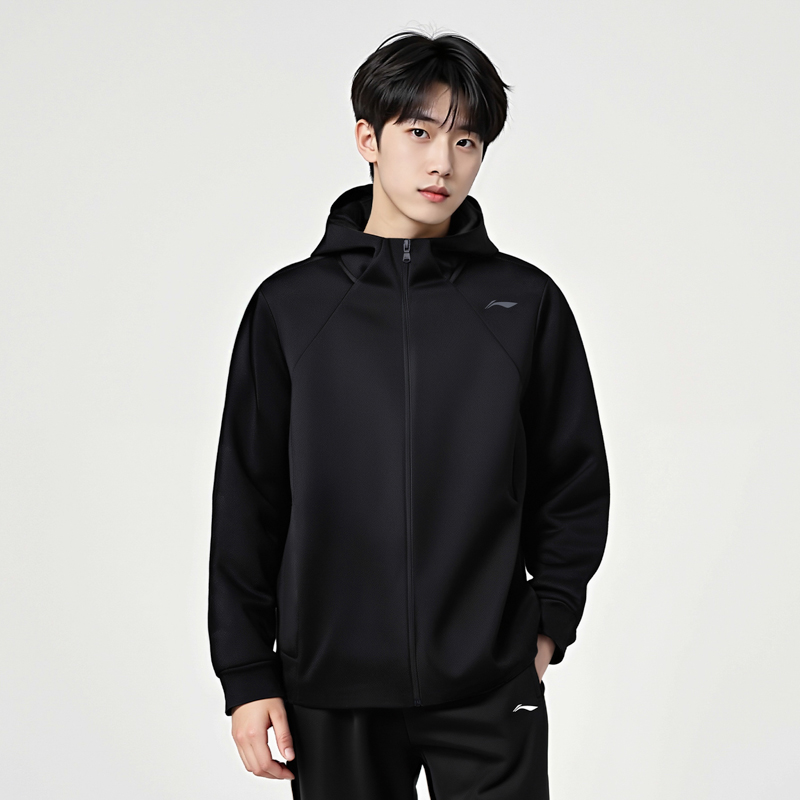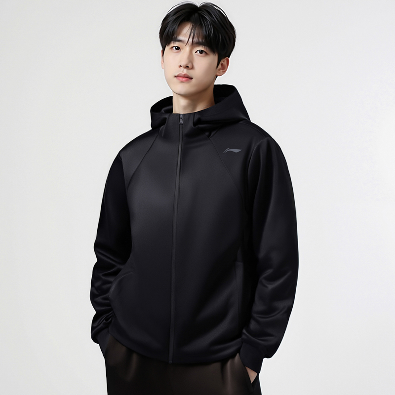 Мужской тренч Li Ning, черный, с капюшоном, средней высоты