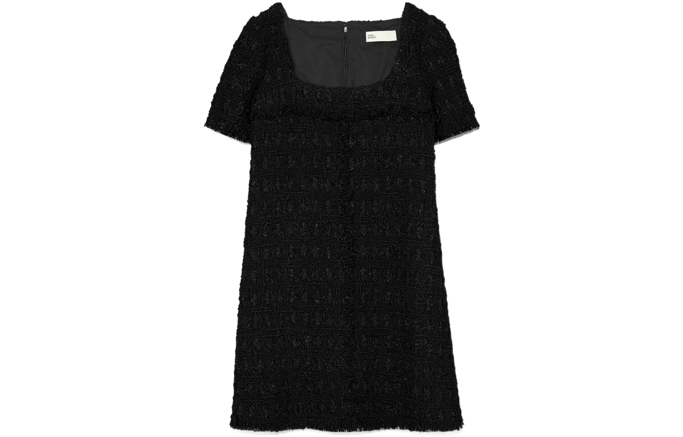 Твидовое платье с квадратным вырезом Tory Burch, черный