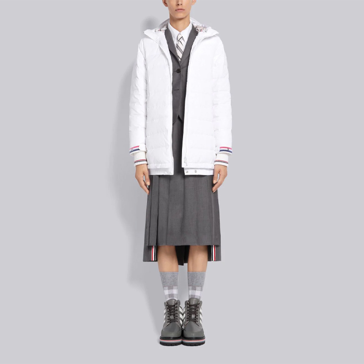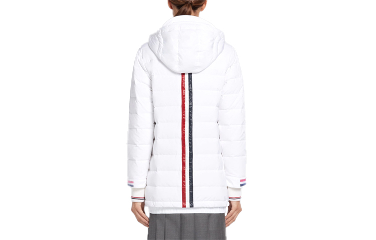 Thom Browne Пуховая куртка женская белая с капюшоном
