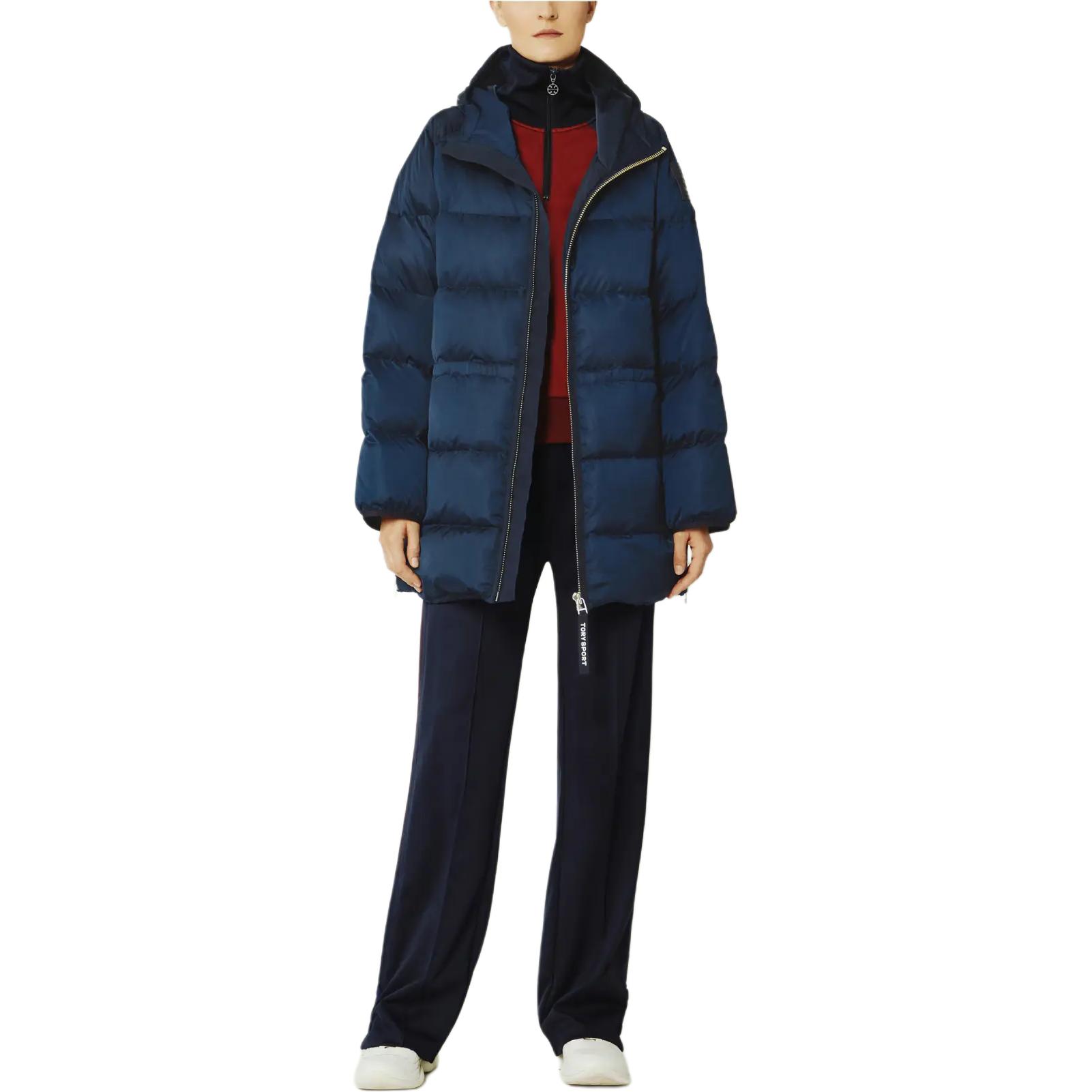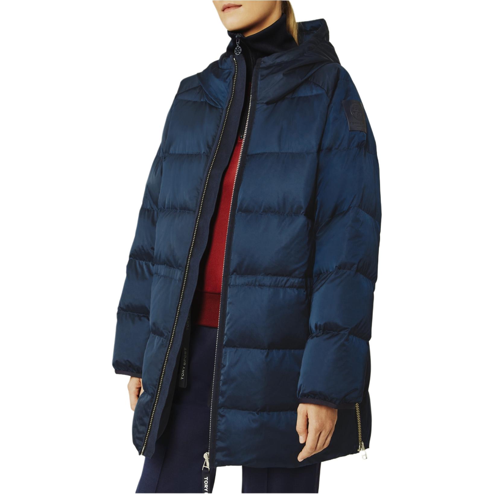 Tory Burch Пуховая куртка женская, темно-синяя, с капюшоном
