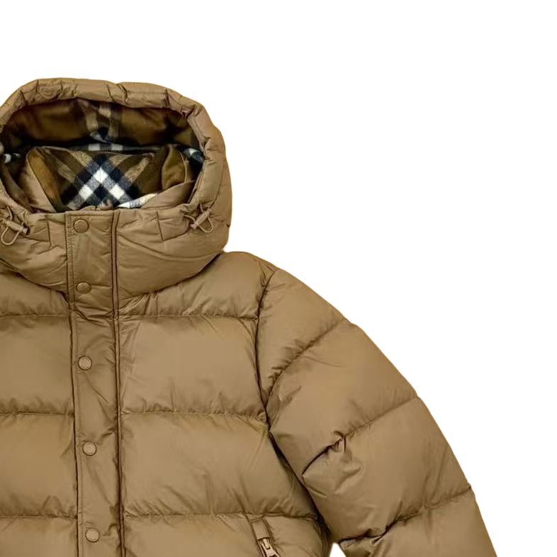 Мужская пуховая куртка верблюжьего цвета с капюшоном, умеренно прямого кроя Burberry, camel