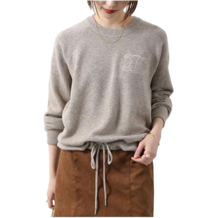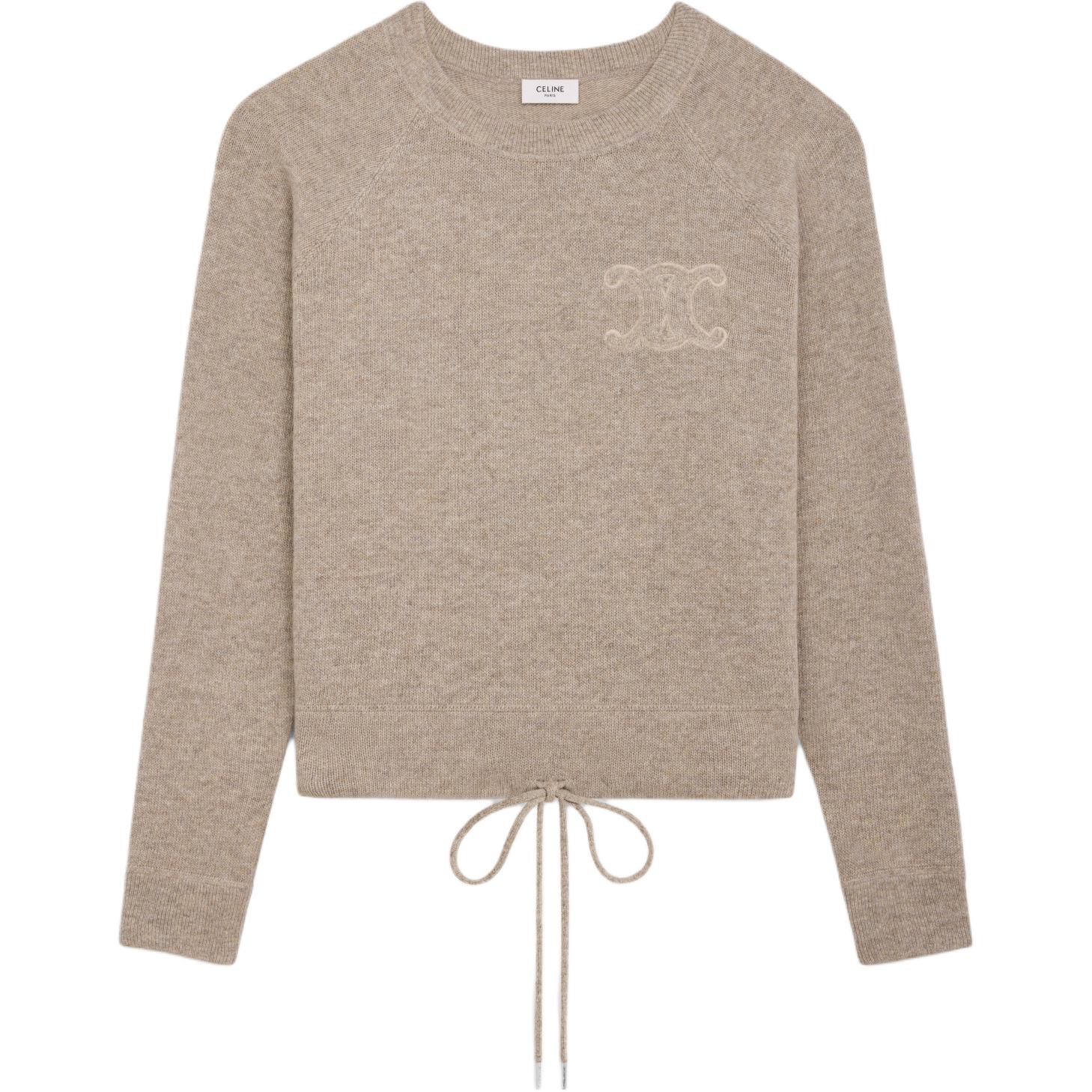 Свитер Triomphe с круглым вырезом и завязками Celine, oat