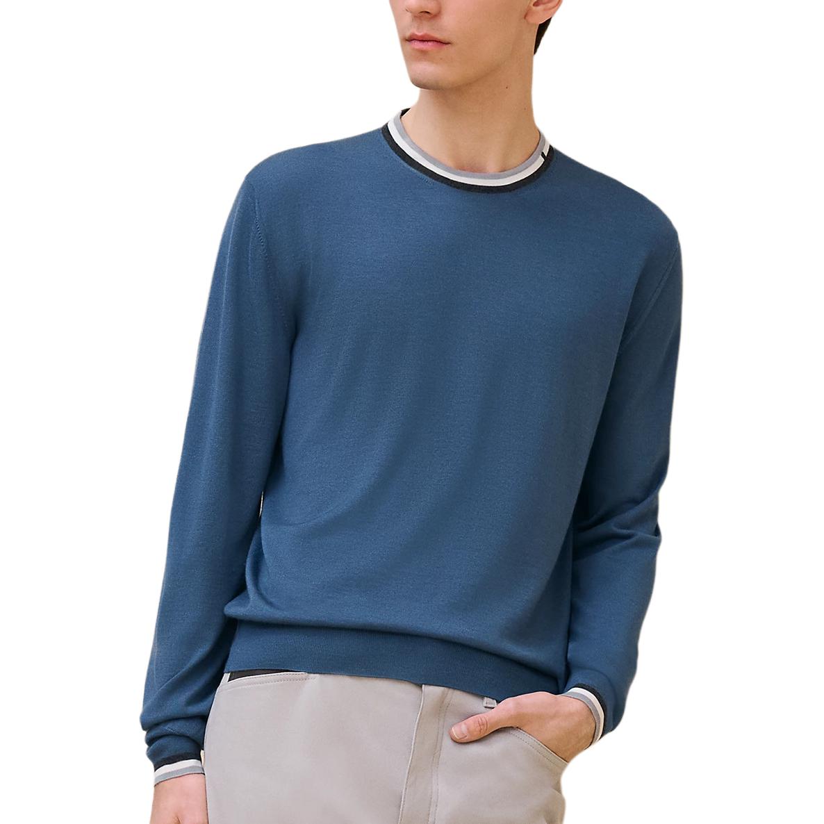 Hermes Мужской кашемировый свитер синего цвета
