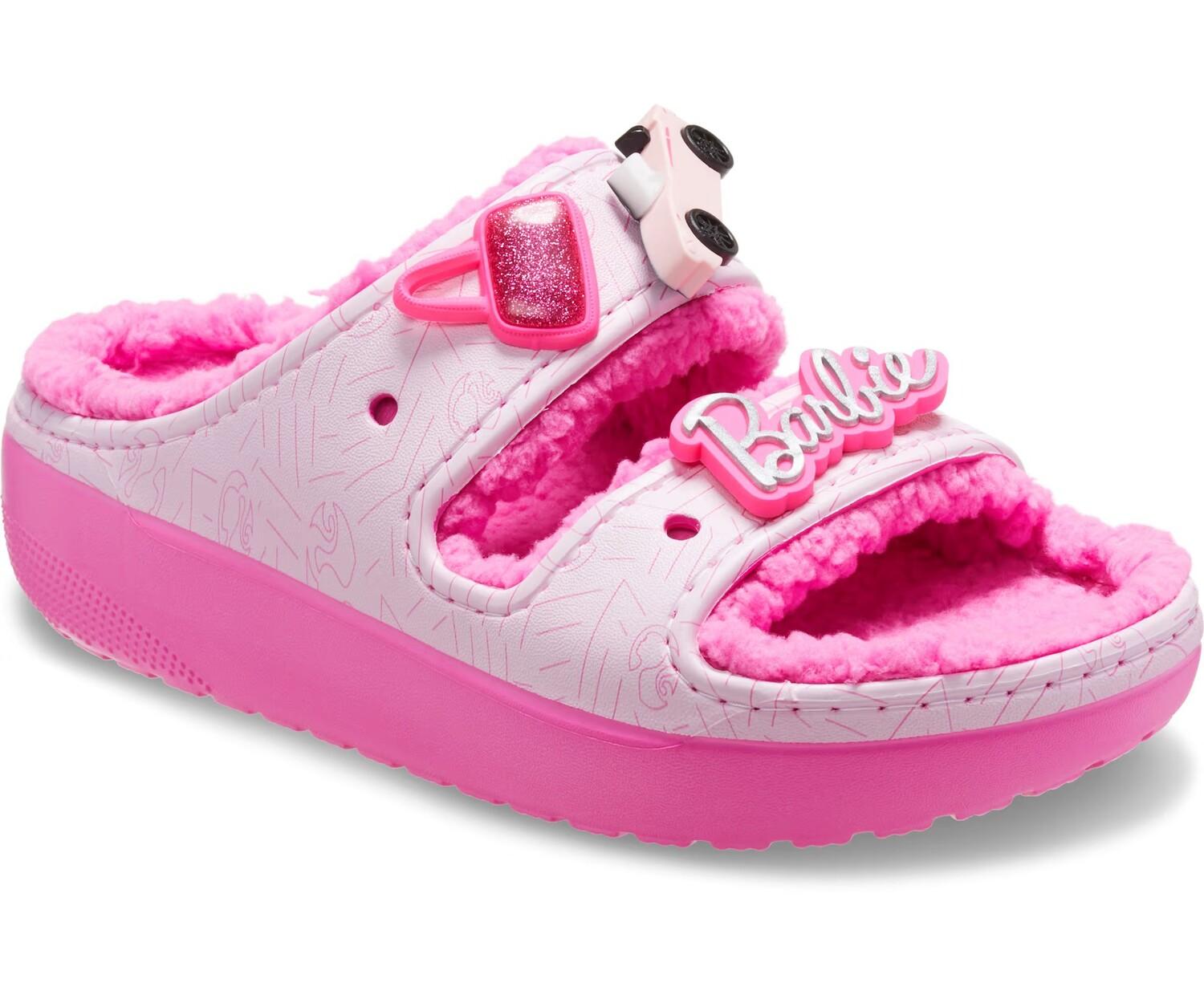 Для девочек Barbie, которые хотят быть уютными и милыми, нарядитесь в сандалии Barbie Cozzzy Sandal. Они покрыты плюшевым розовым пухом и украшены знаковыми брелоками Barbie Jibbitz для дополнительного комфорта и стиля, которые будут радовать вас круглый год.