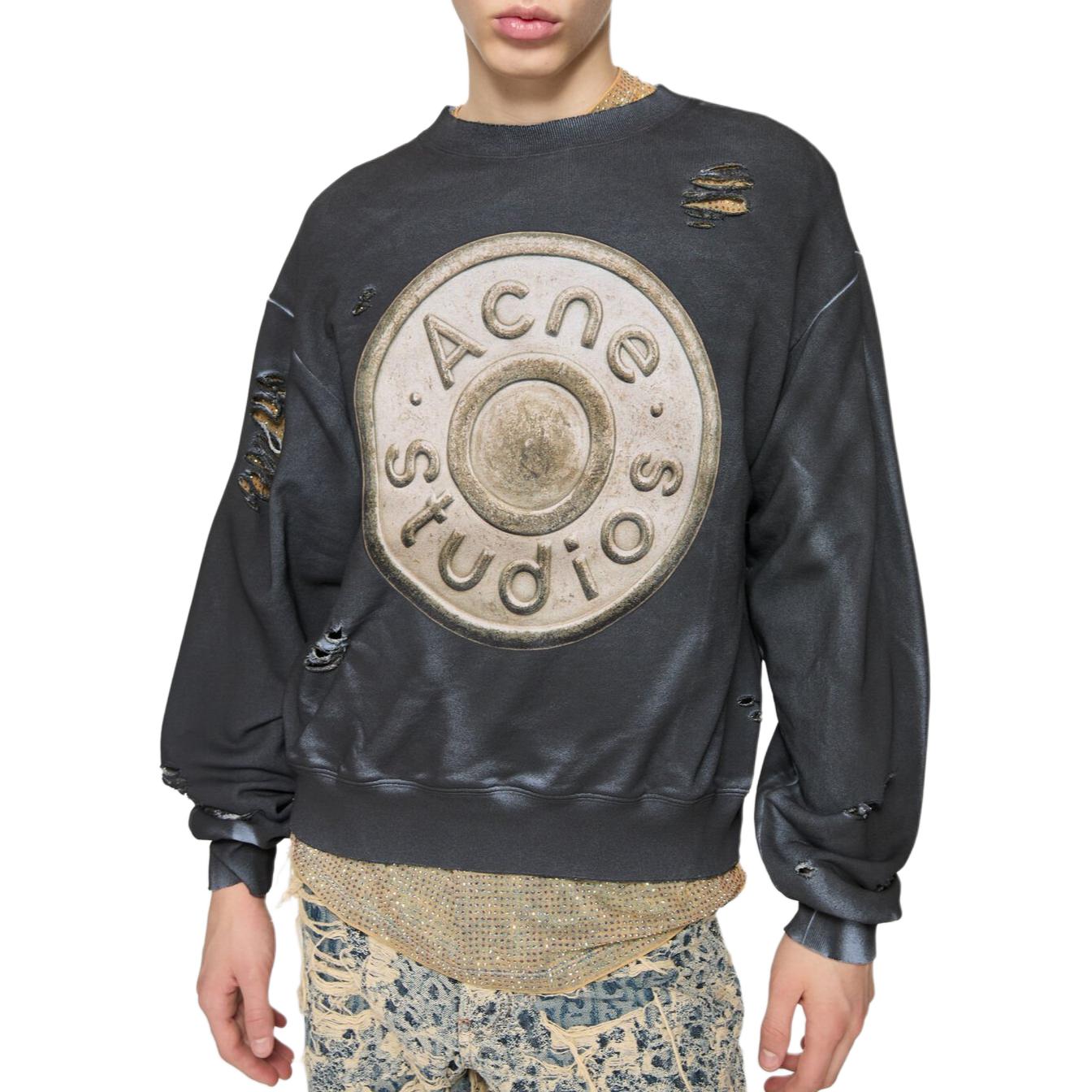 Толстовка с логотипом и эффектом потертости Acne Studios, серый