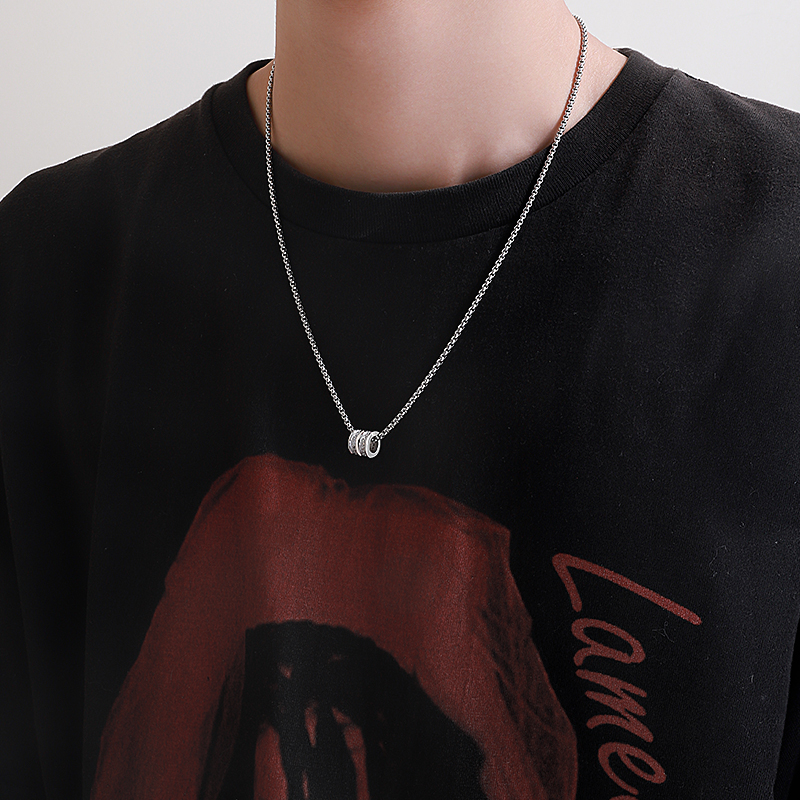 Style: Rhinestone-Embellished Small Round Pendant Sweater Chain[925 Sterling Silver Pendant+70cm Square Bead Chain]