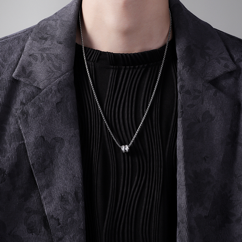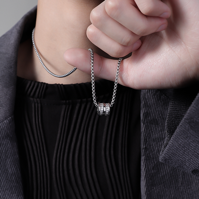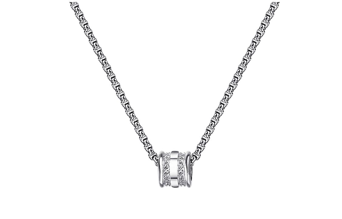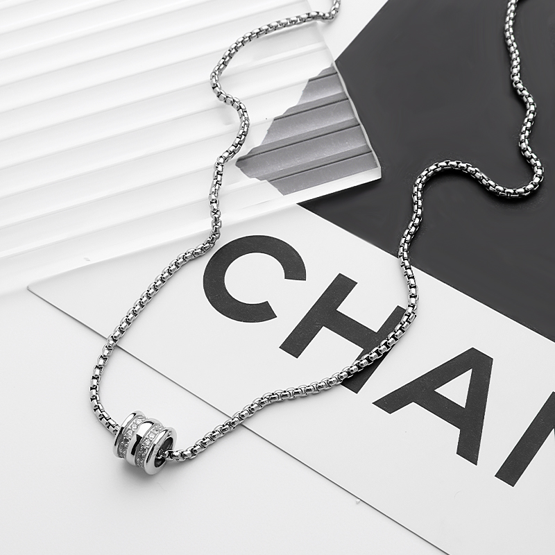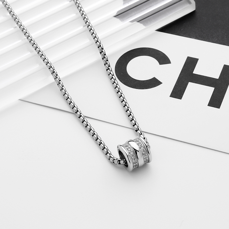 Style: Rhinestone-Embellished Small Round Pendant Sweater Chain[999 Silver Pendant+70cm Square Bead Chain]