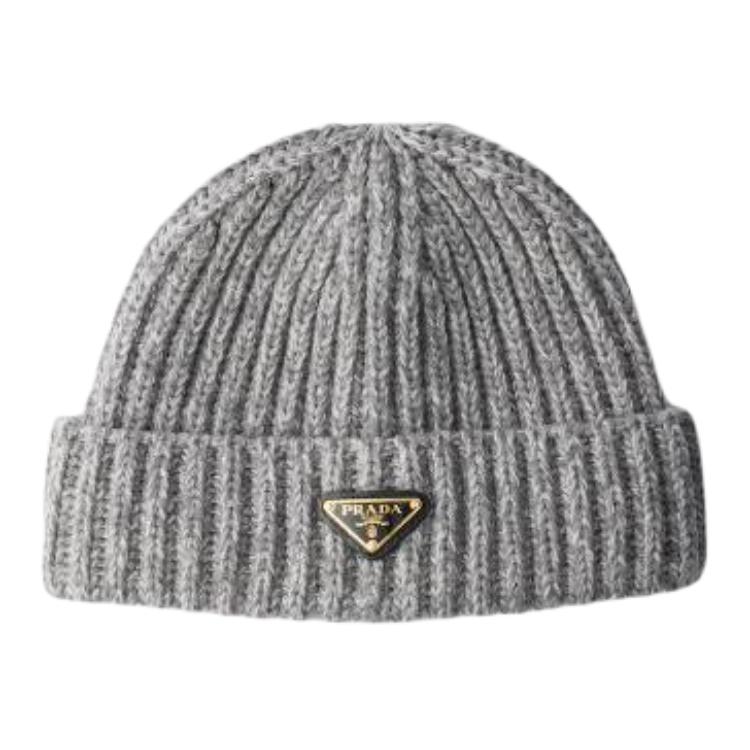 Шапка с эмалированным треугольным логотипом Prada, серый