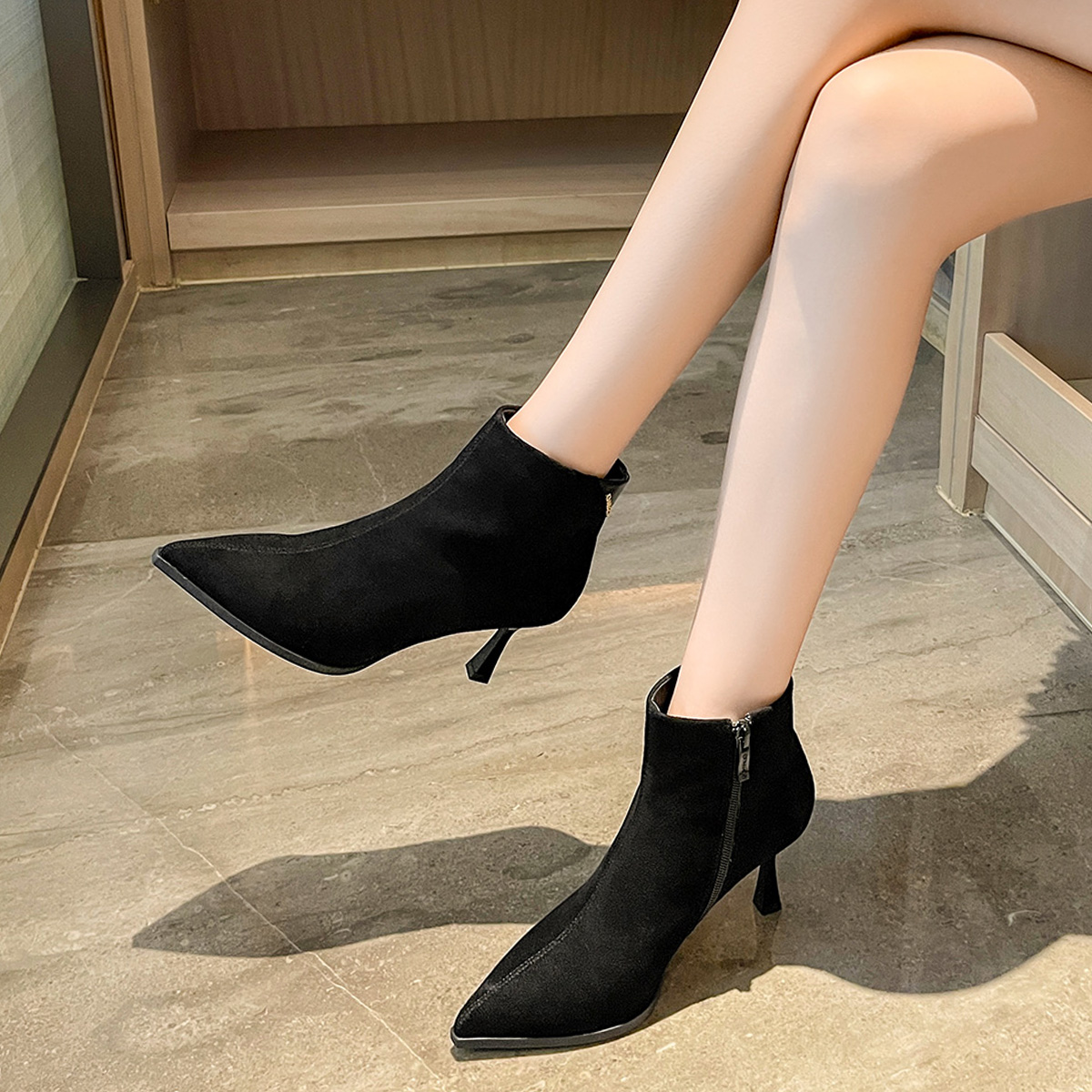 Женские ботильоны 7 см Gudianfengdu, черный (unlined) 4 100₽