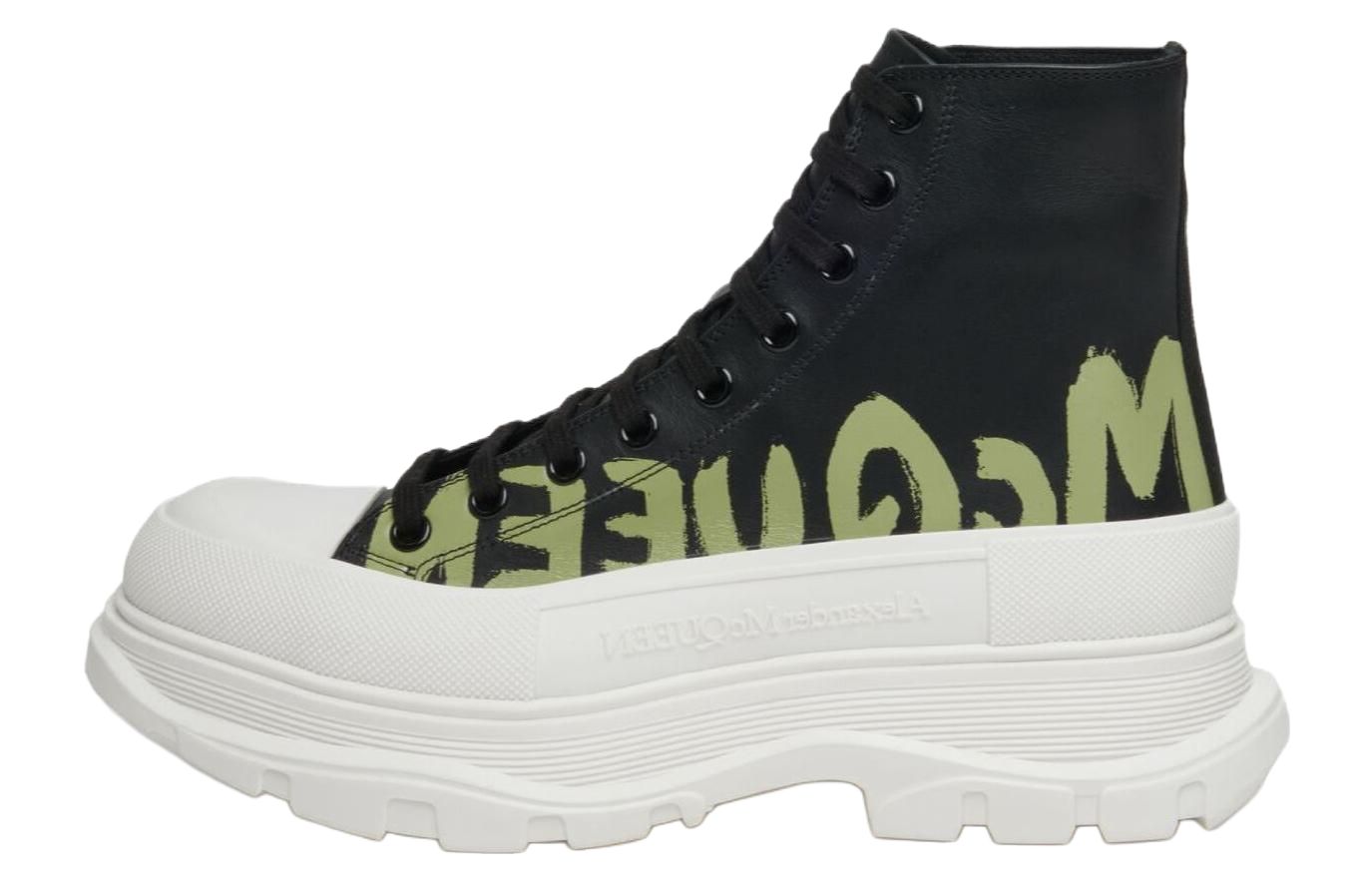 Alexander Mcqueen Протектор гладких ботинок Граффити Черный Хаки