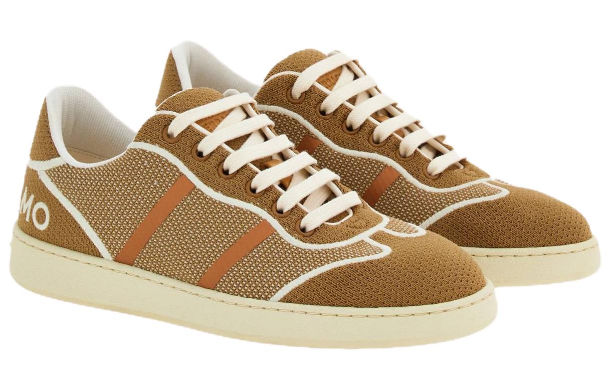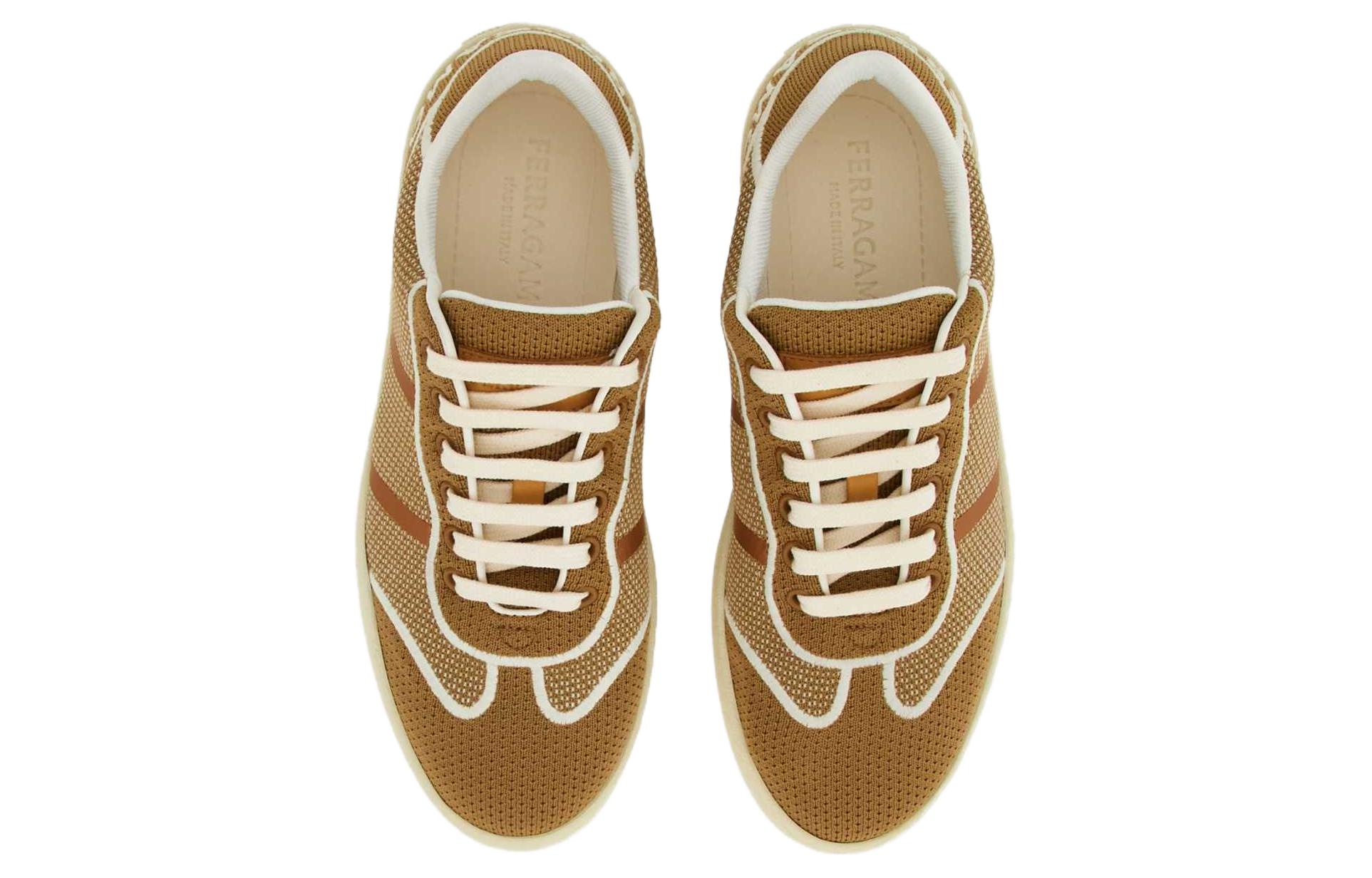 Низкие кроссовки с вышитым логотипом Ferragamo, camel