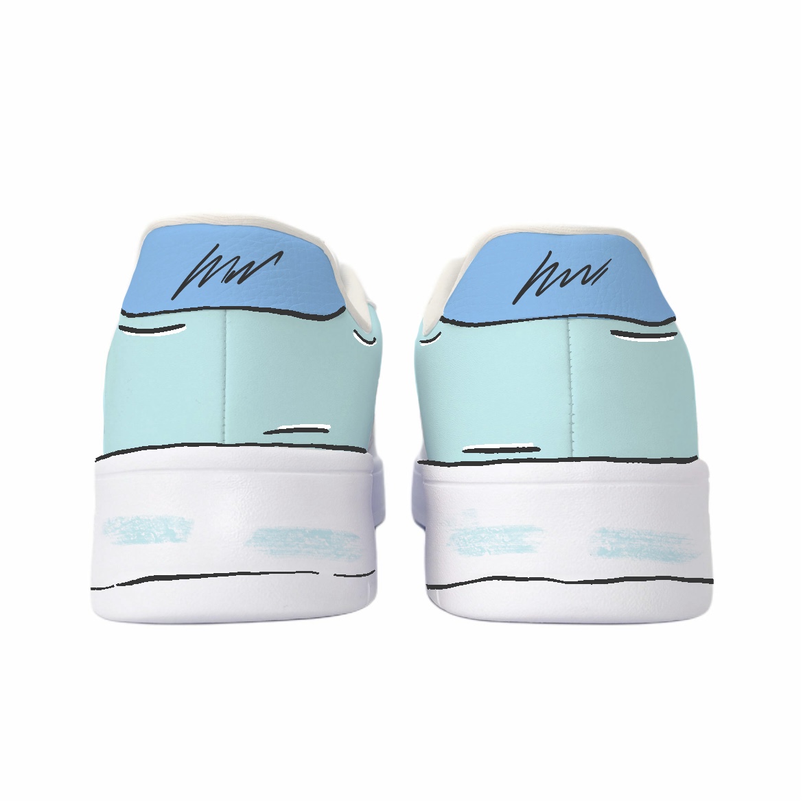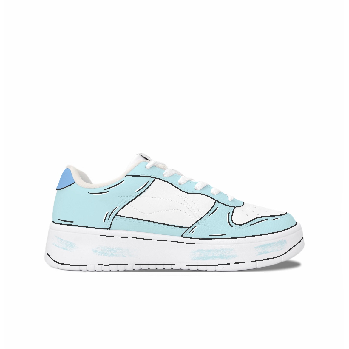 Эти кастомизированные кроссовки созданы на основе оригинальной женской модели низких кроссовок Li-Ning Floating Boat. Основная концепция дизайна - «свежая аниме-эстетика × милый уличный стиль», сочетающая нарисованные от руки линии и освежающие цветовые блоки, заимствованные из мультфильмов, с простым силуэтом современных кроссовок. Ледяной синий цвет в качестве основного заимствует освежающие и успокаивающие визуальные символы из аниме, а светло-голубой логотип бренда выполнен в мультяшном стиле, черные линии очерчивают форму обуви, имитируя динамичный визуальный эффект комикса. Цветовая гамма использует освежающее сочетание ледяного синего и белого, отвечая эстетическим предпочтениям молодых женщин, стремящихся к милому и свежему стилю, делая кроссовки не просто модным аксессуаром, но и стильным носителем свежих, вдохновленных аниме, чувств девушек.