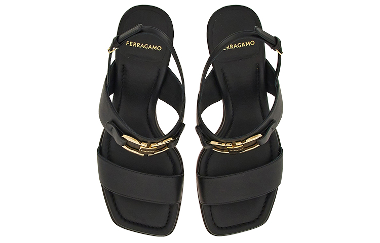 Кожаные сандалии Gancini с пряжкой, 55 мм Ferragamo, черный 63 177₽