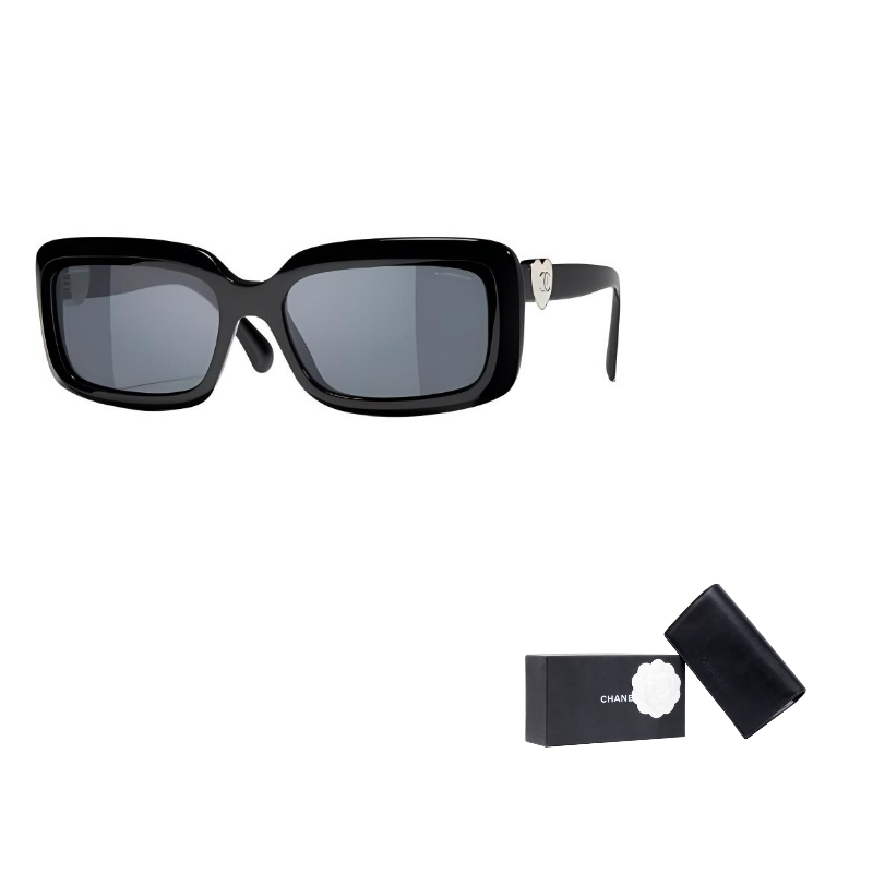 Chanel Прямоугольные солнцезащитные очки унисекс, черные
