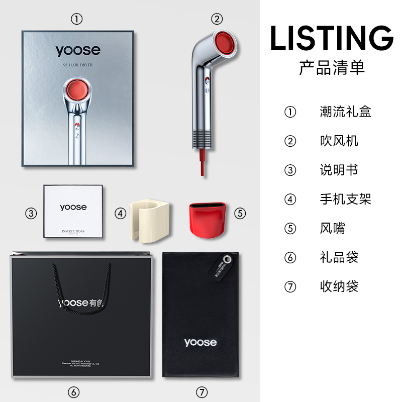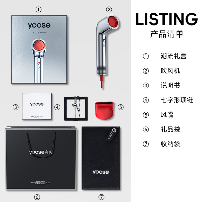 Фен Yoose, s2 liquid серебро+necklace box