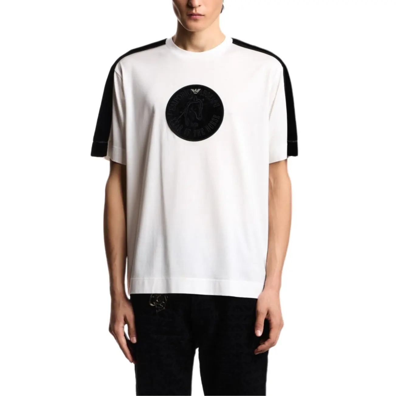 Летняя белая футболка в полоску от Emporio Armani.