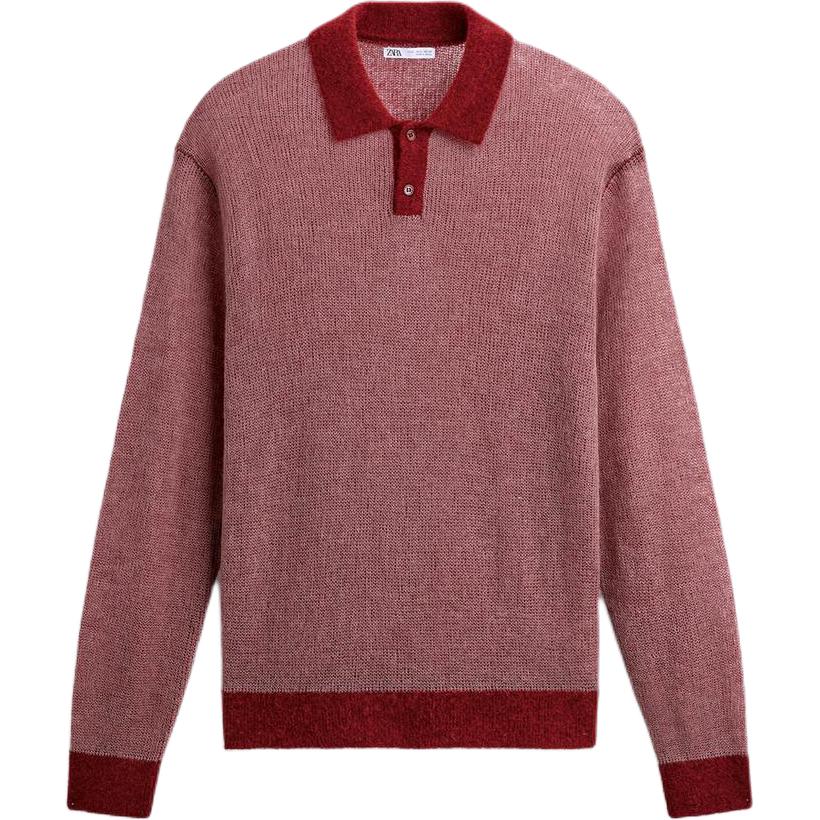 Zara Мужская рубашка поло бордового цвета